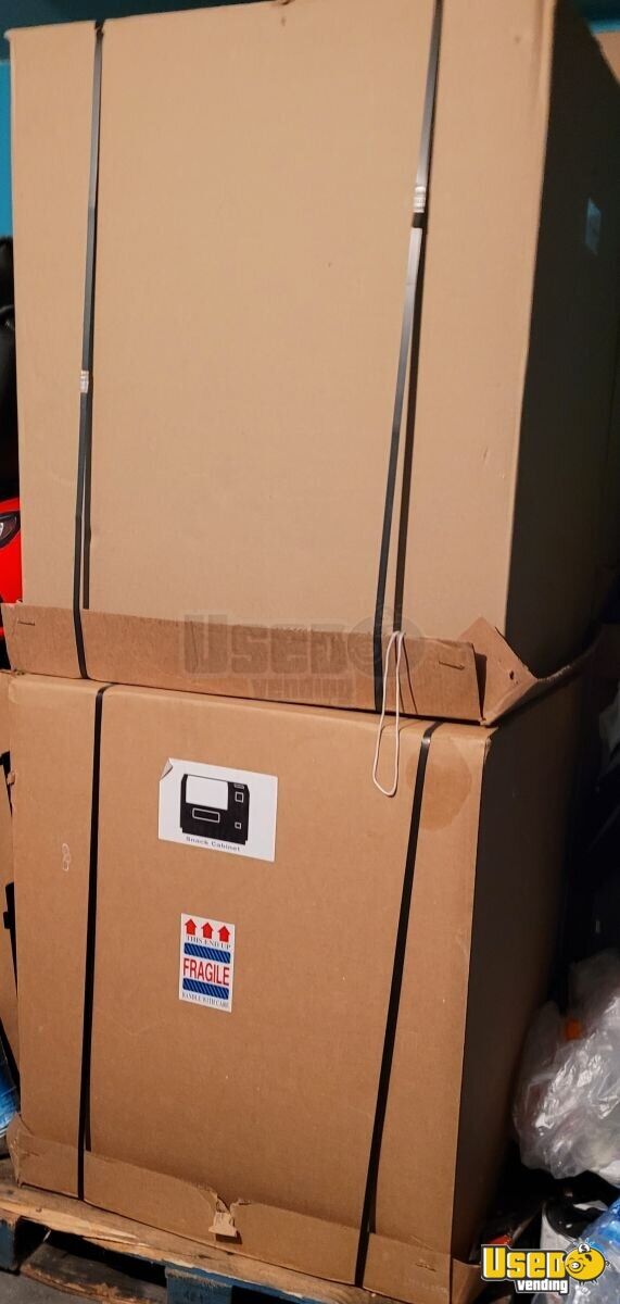 (6) 2018 Seaga FM16 new still-in-box unopened cashless snack and drink combo vending machines. Which are 2 pieces so it's a total of 3 machines. Equipped with a coin mech and card reader. Ideal for a starter or to increase your fleet of equipment. The soda has 4 canned selections and 18 snack selections.