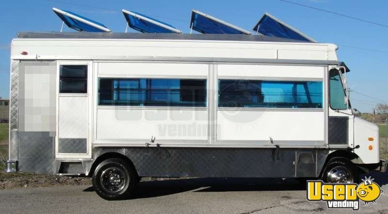 This is a hugely versatile food truck that is ready for you to customize and get rolling with- its full of nice equipment and being sold by second owner. This unit is fully self-contained and will runall equipment for 10-12 hours with no electricity needed, if charged overnight. Maintenance up to date including full tune up,new batteries.· Stainless steel interior · Aluminum plated flooring · 3 sinks and Single hand wash sink · Open shelves along both sides · 24' x 41'' cooking grill (comal) · Deep fryer with double basket · Large cutting board · Illuminated Inside/outside Vent hood with filters & extractor with fans · 2 concession wing doors, with 3 small servingwindows · Deep/ large Pop cooler (exterior) · Water tanks- approx 40 gallon for fresh waterand 10 gallon for hot water · Waste water tank approx 60 gal Mechanic Inspection sticker up to date · Big, built in refrigerator inside for vegetables, meats, ingredients etc · Outside working refrigerator 33 x 43 for Sodas, milk, fruits, salads, cold sandwiches, Desserts etc · Operated with propane: (steamer, grill, deepfryer, hot water tank for coffee and customers hand wash) · Heavy-duty multi battery system will power interior/exterior lights, exhaust fans, refrigerator inside and outside. · 4 overhead pop up skylights with screens · Large storage area under all sinks · Built in propane tank with gauge ·