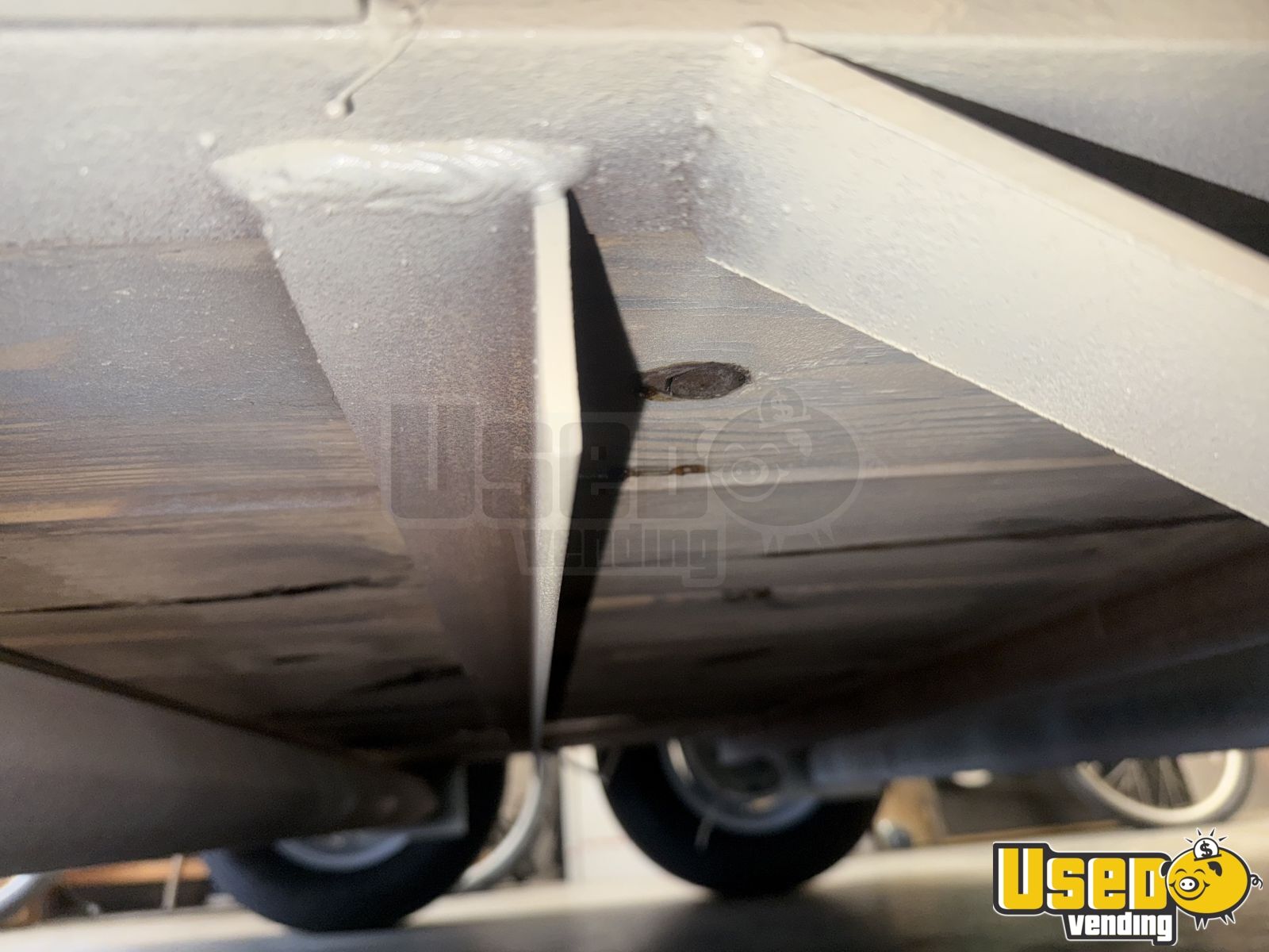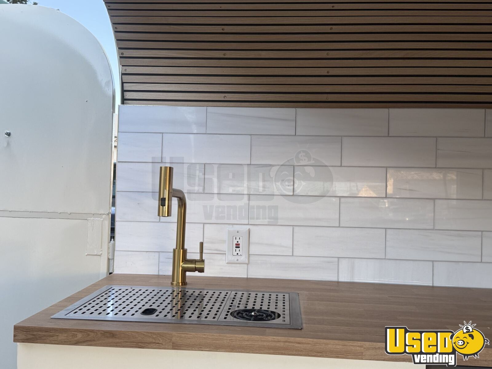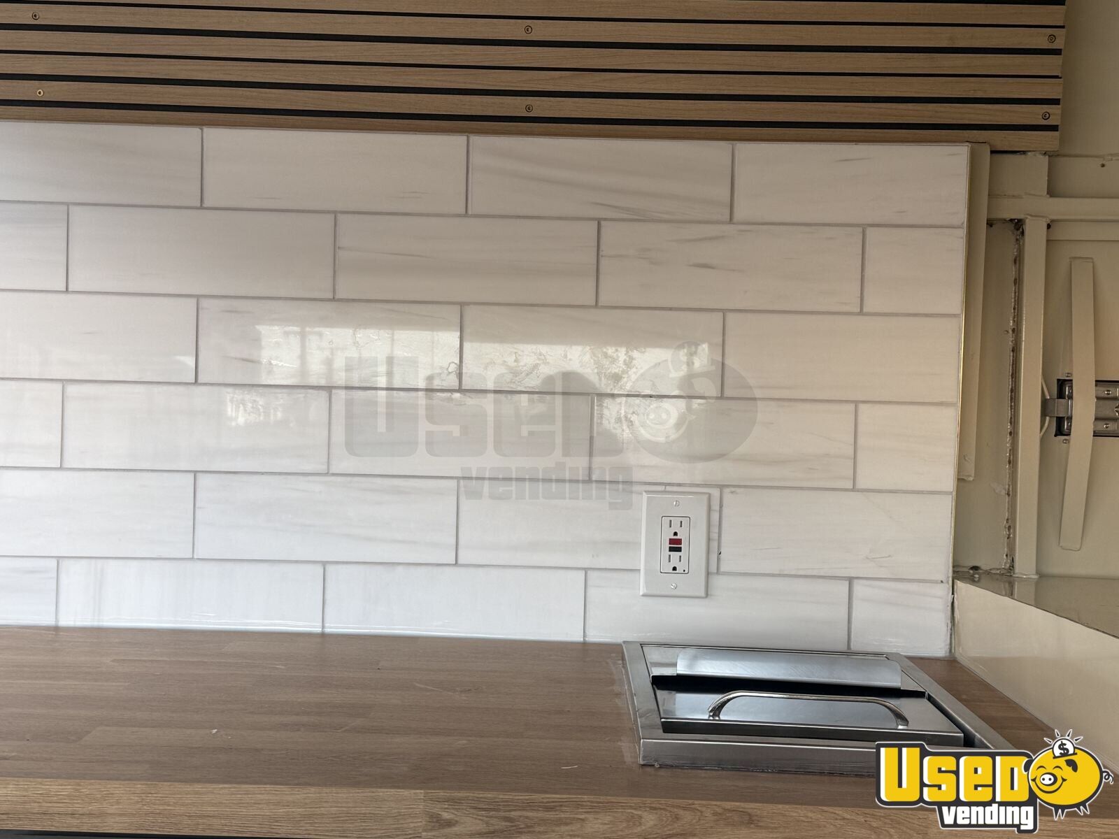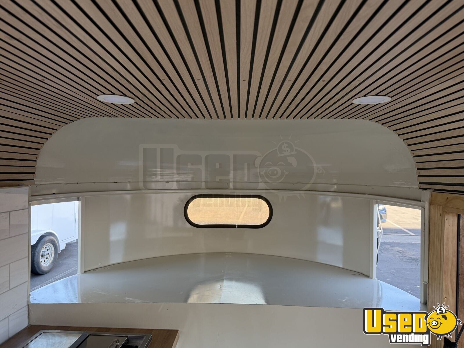 Cut reinforced, sandblasted, and powder-coated paint. New wheels and tires, new luxury waterproof vinyl flooring, new wall framing, new insulation, new interior paneling, new wiring with electrical panel, switches, and outlets, exterior sconces, interior ceiling lights, wood ceiling panels, tile backsplash, laminate countertops.