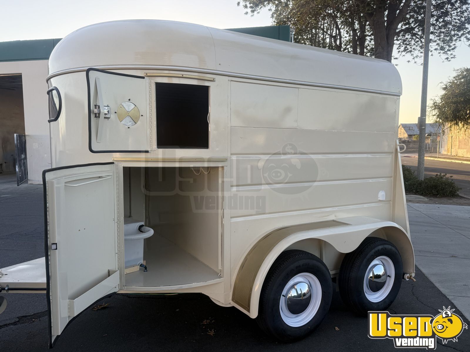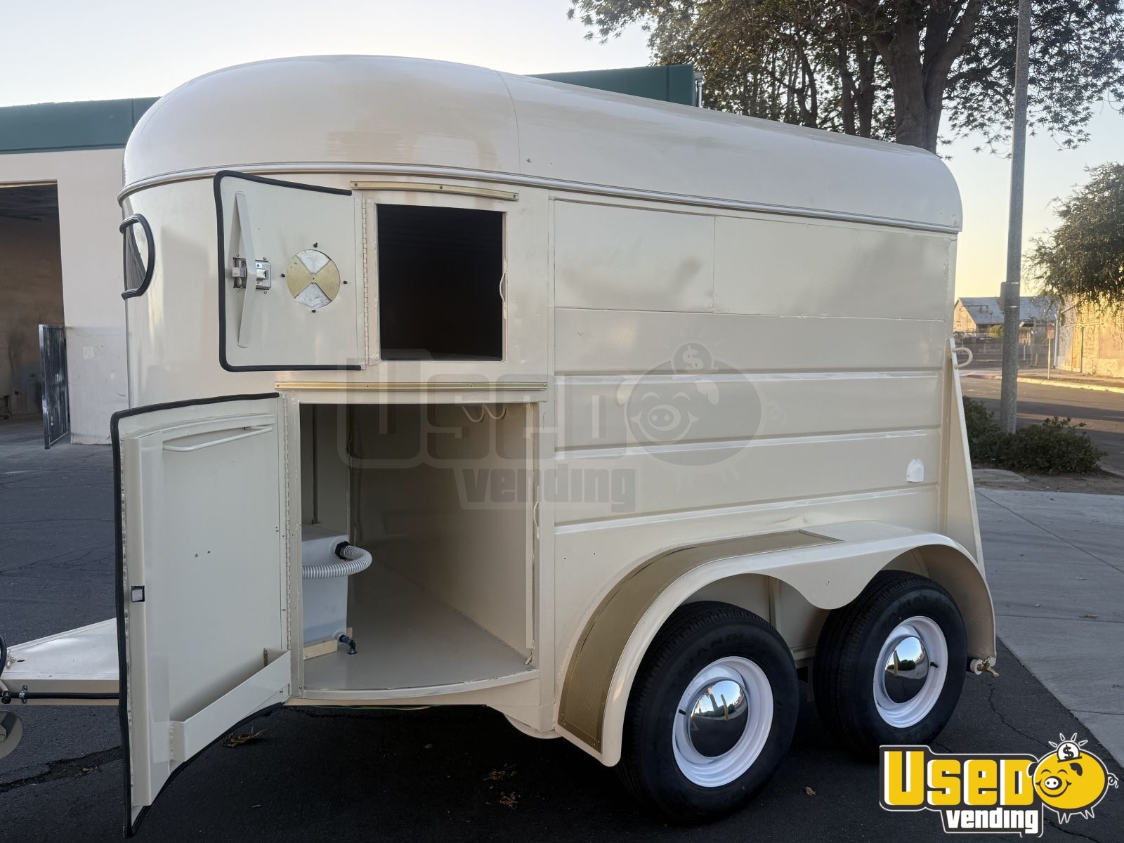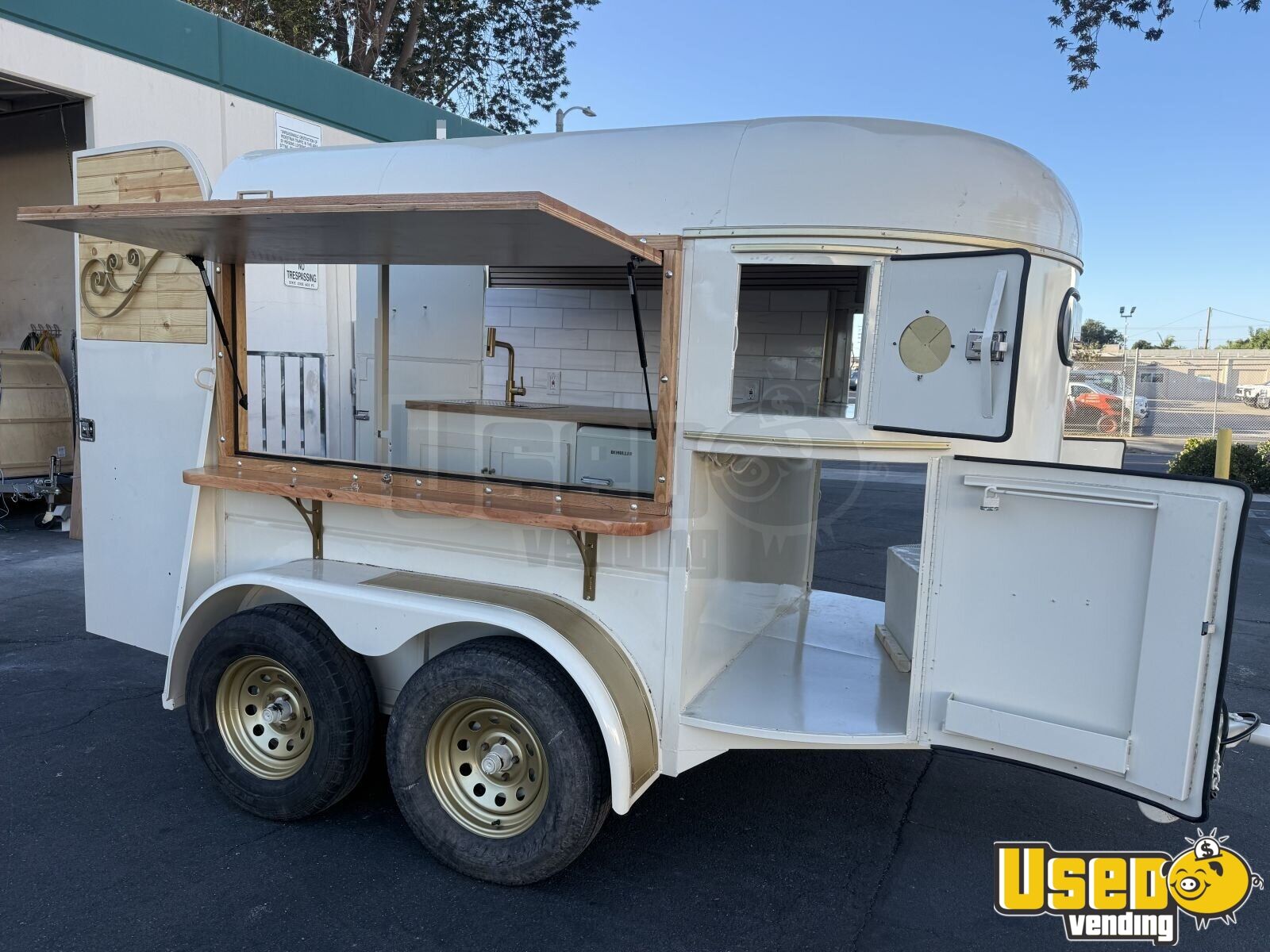 This beautifully restored horse trailer has been transformed into a modern coffee shop on wheels. Reinforced, sandblasted, and fully powder-coated, it’s ready to serve at private events, festivals, or backyard gatherings with a professional look and durable finish.