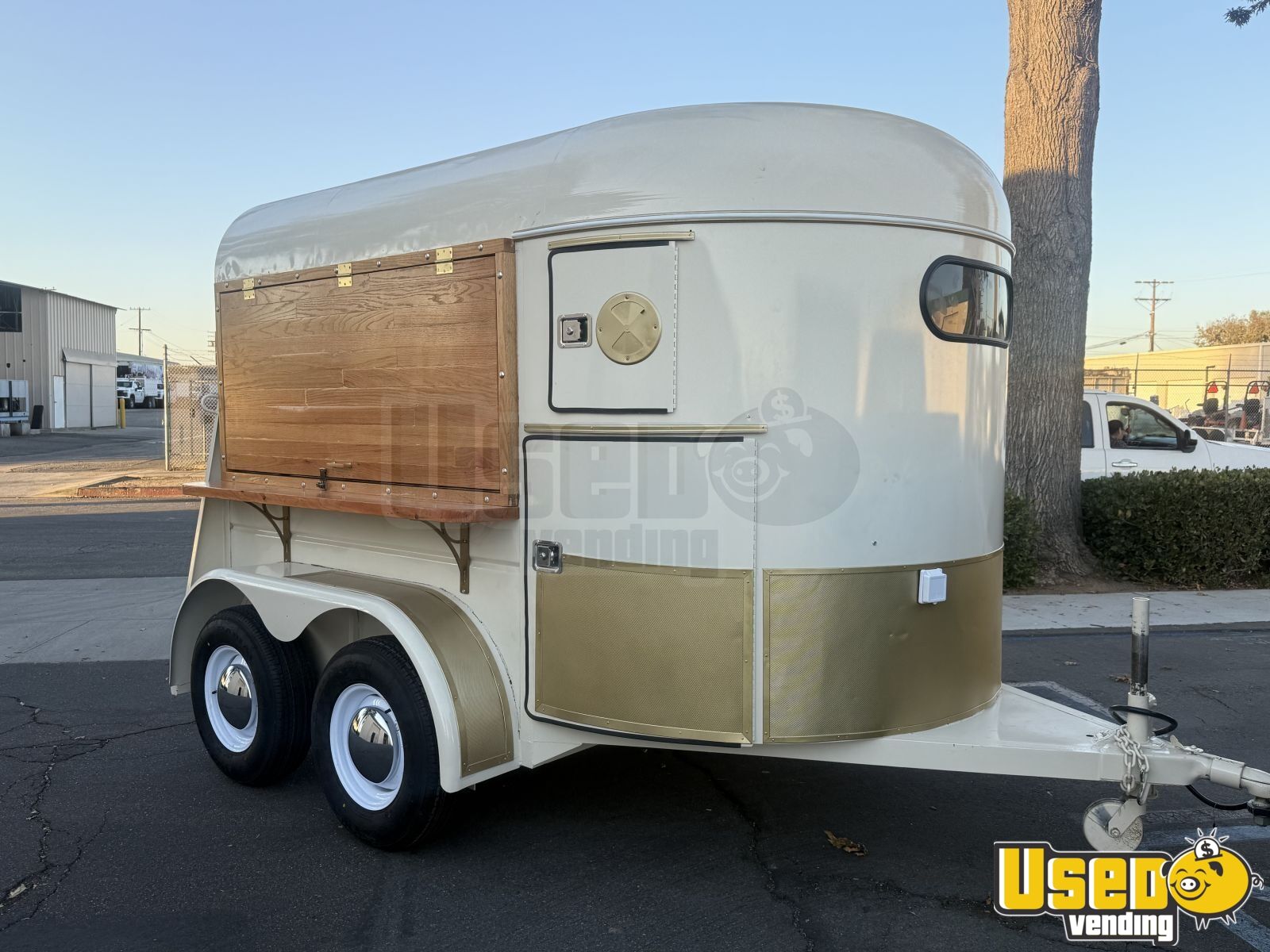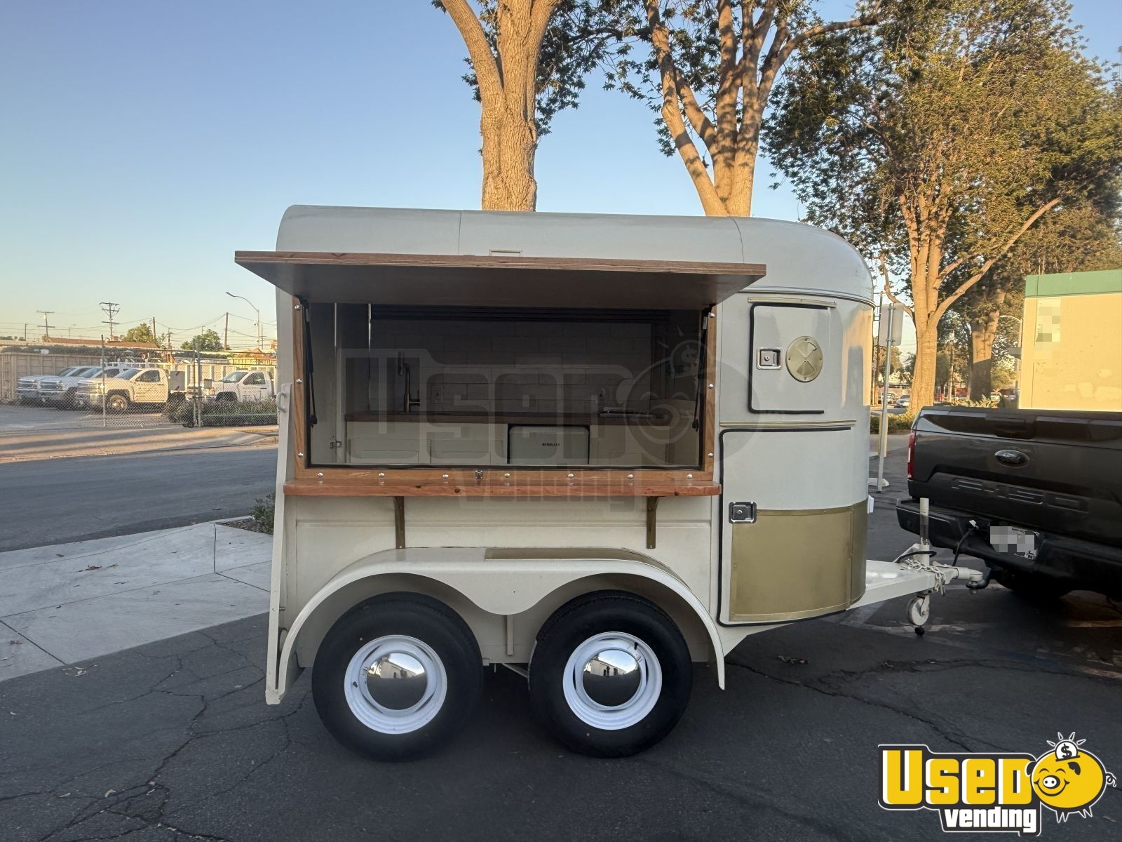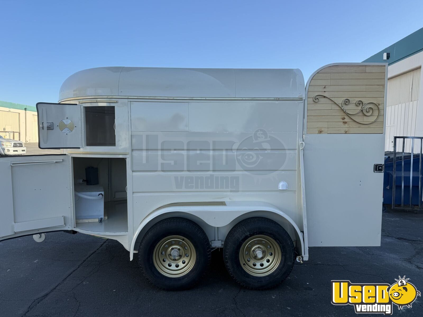 This beautifully restored horse trailer has been transformed into a modern coffee shop on wheels. Reinforced, sandblasted, and fully powder-coated, it’s ready to serve at private events, festivals, or backyard gatherings with a professional look and durable finish.