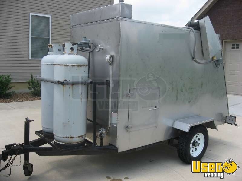 This is a used but quality built Holstein Mfg. Model 306 stainless steel corn roaster. The corn roaster can roast roughly 250 ears in 30 minutes or 500 ears per hour! Can also be used for selling baked potatoes, smoked turkey legs, stuffed chili peppers, half apples, half peaches, mini pizzas, mini fruit pies, etc. It includes the optional 4 bay stainless steel sink, which is supplied hot water by the holding tank on top of the unit. The water is heated when the roaster is in use. Unit can be pulled by a pick-up truck or SUV (2” trailer hitch).
