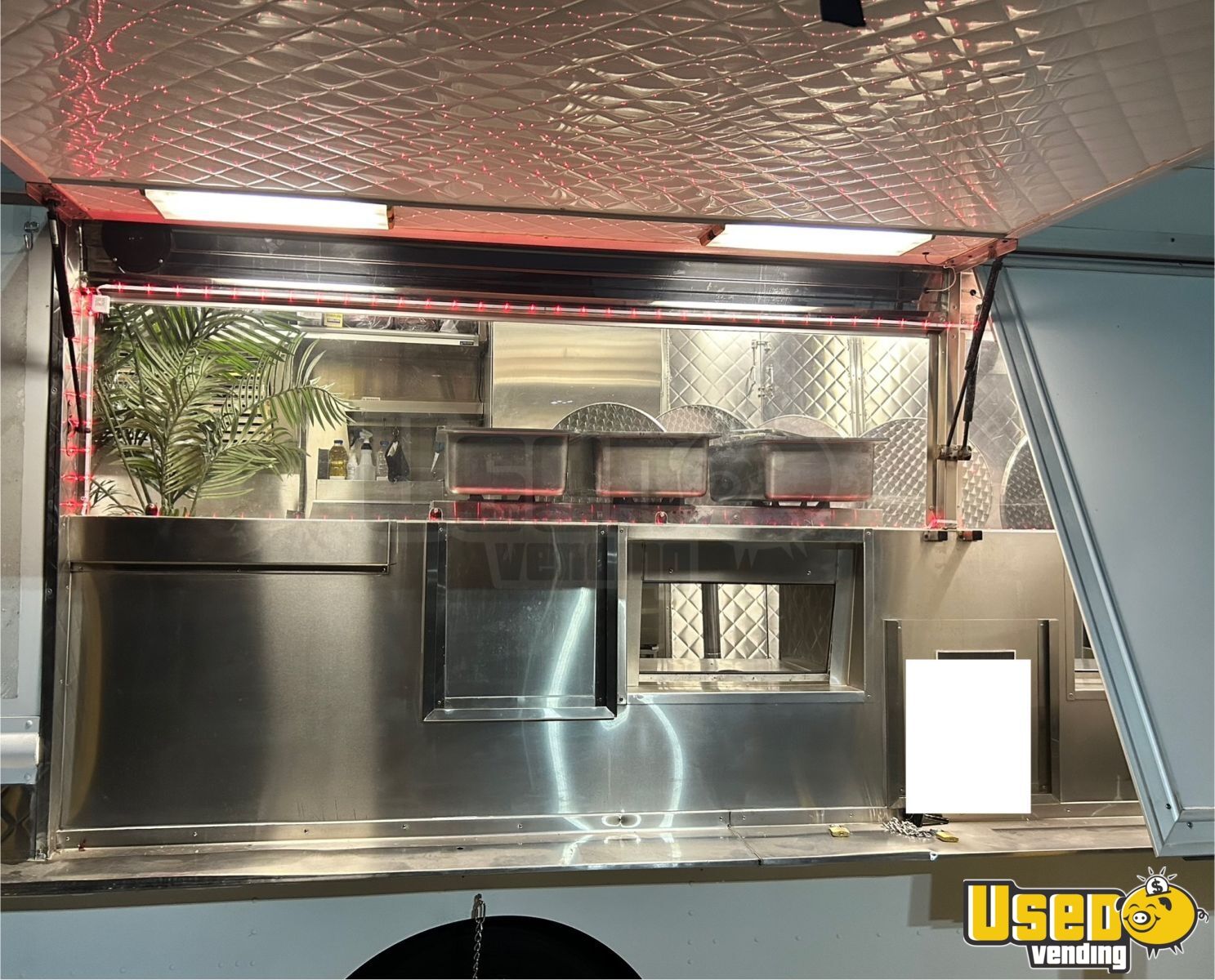 Standout features include: - Unit is certified with California HCD/HUD insignia - Three concession windows and overhead AC - 36” flat griddle, 40 lb fryer, oven, and four warming cabinets - Three True refrigerators plus prep cooler - Triple sink, hot water heater, and efficient plumbing system - Upgraded lighting, backup camera, and sound system - Includes all service records, blueprints, and health inspection approvals - With HCD Insignia - Carb compliant Minor note: exterior is paint or wrap ready, allowing full customization. Call today to learn more about this outstanding mobile kitchen!