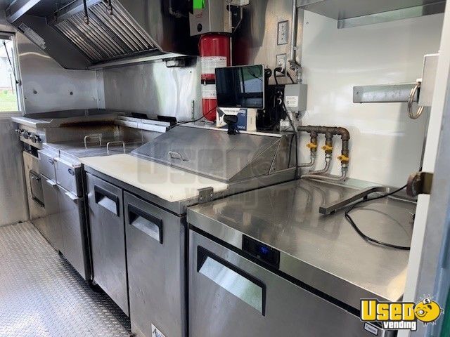 Standout features include: - 6’ exhaust hood with fire suppression system - 36" flat grill and two 40# fryers - Multiple refrigerators and a freezer - Dual prep stations with refrigerated condiment bay - 9,000W inverter generator - Air conditioning and insulated stainless interior - New tires and upgraded suspension