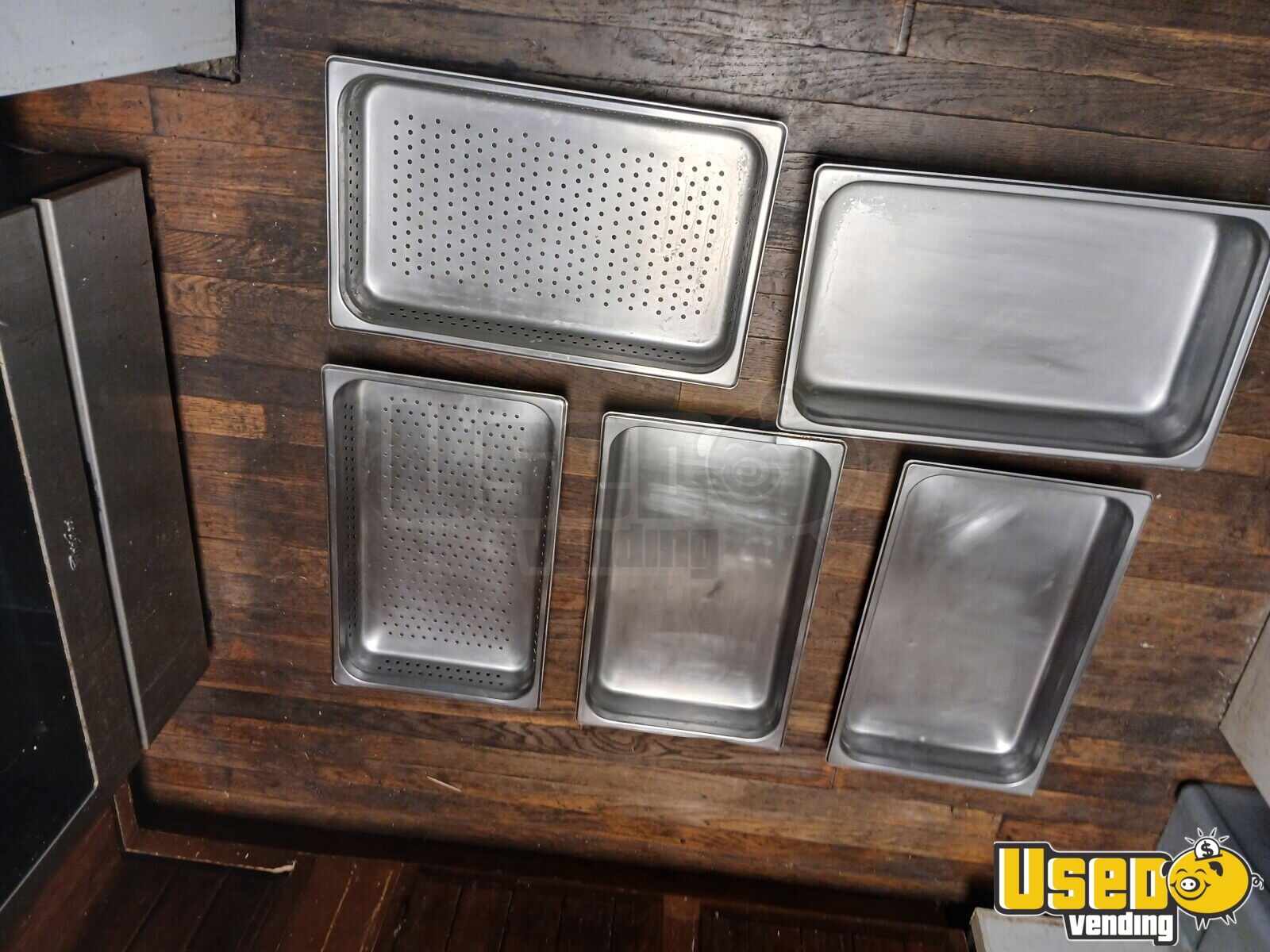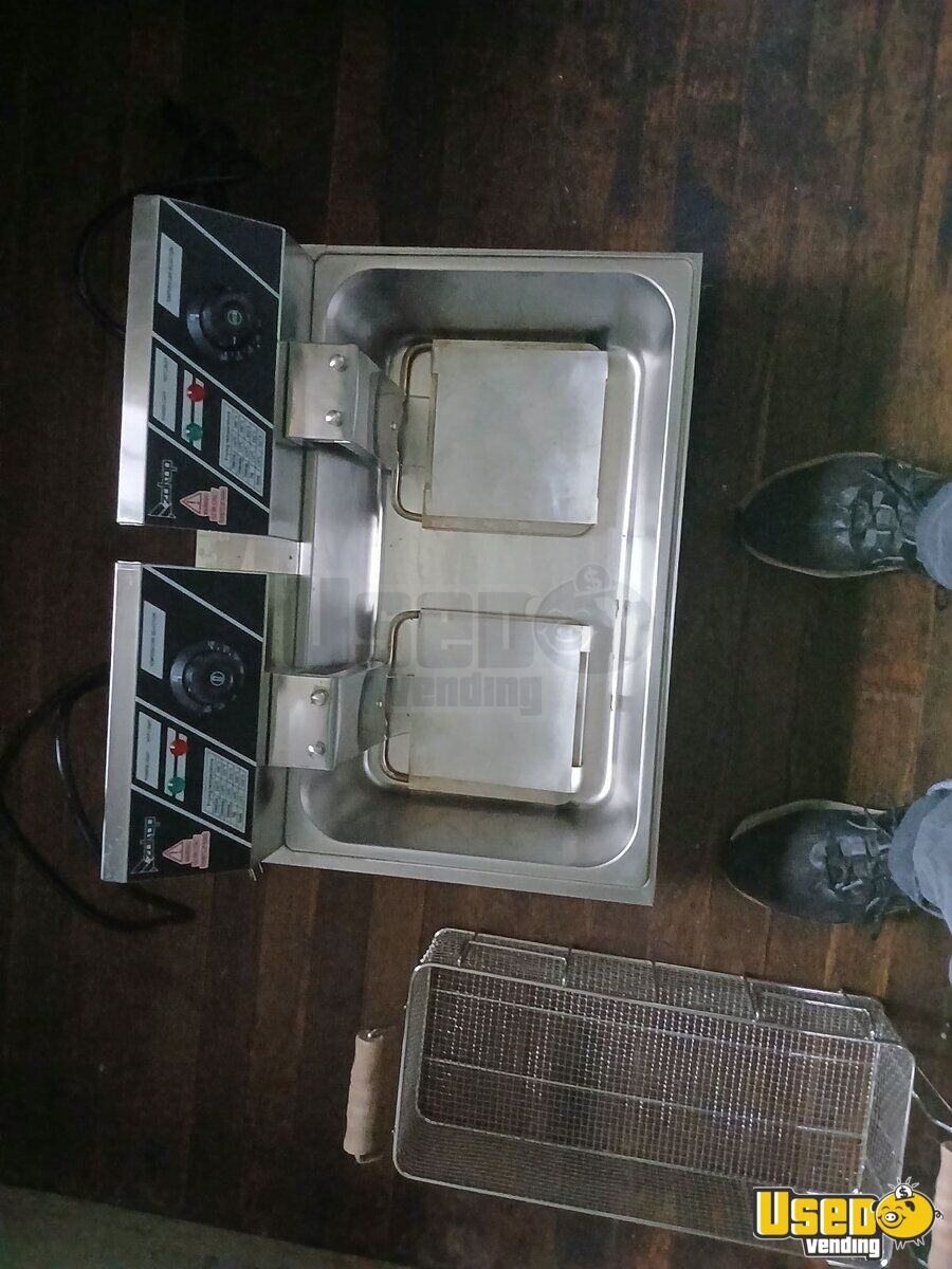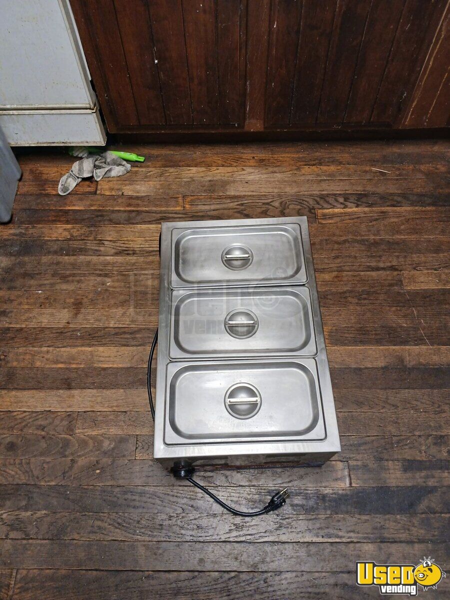Everything works. Inside And outside lights. It is well lit up! Has Ohio health license. Had to pass inspection to get the health license. Was used for selling Italian sausage, polish sausage, fried cheese, hamburgers, French fries as well as Philly cheese steaks, deep fried veggies, boneless Pork chops and there's a lot of other stuff that you can sell too! The freshwater holding tank holds 20 gallons and Gray water holding tank holes 20 gallons.It is all self contained.