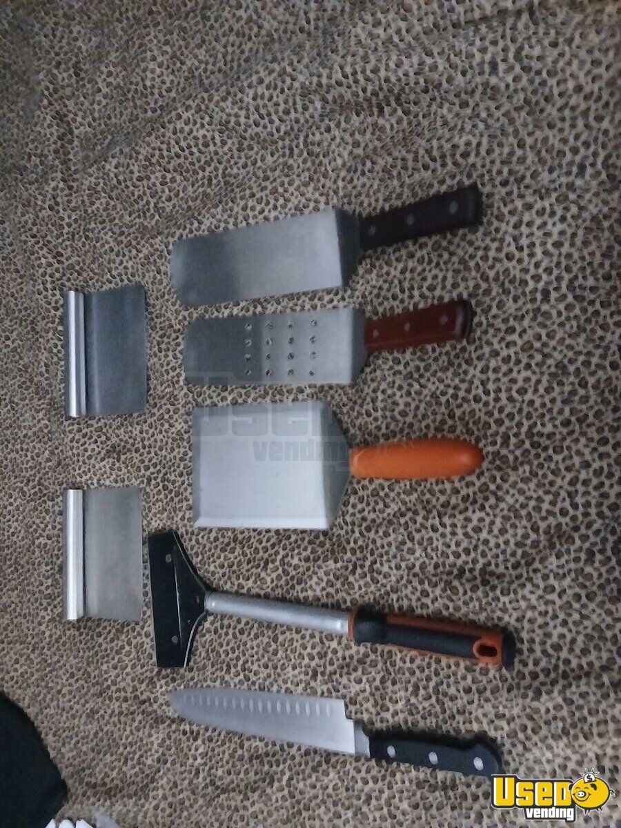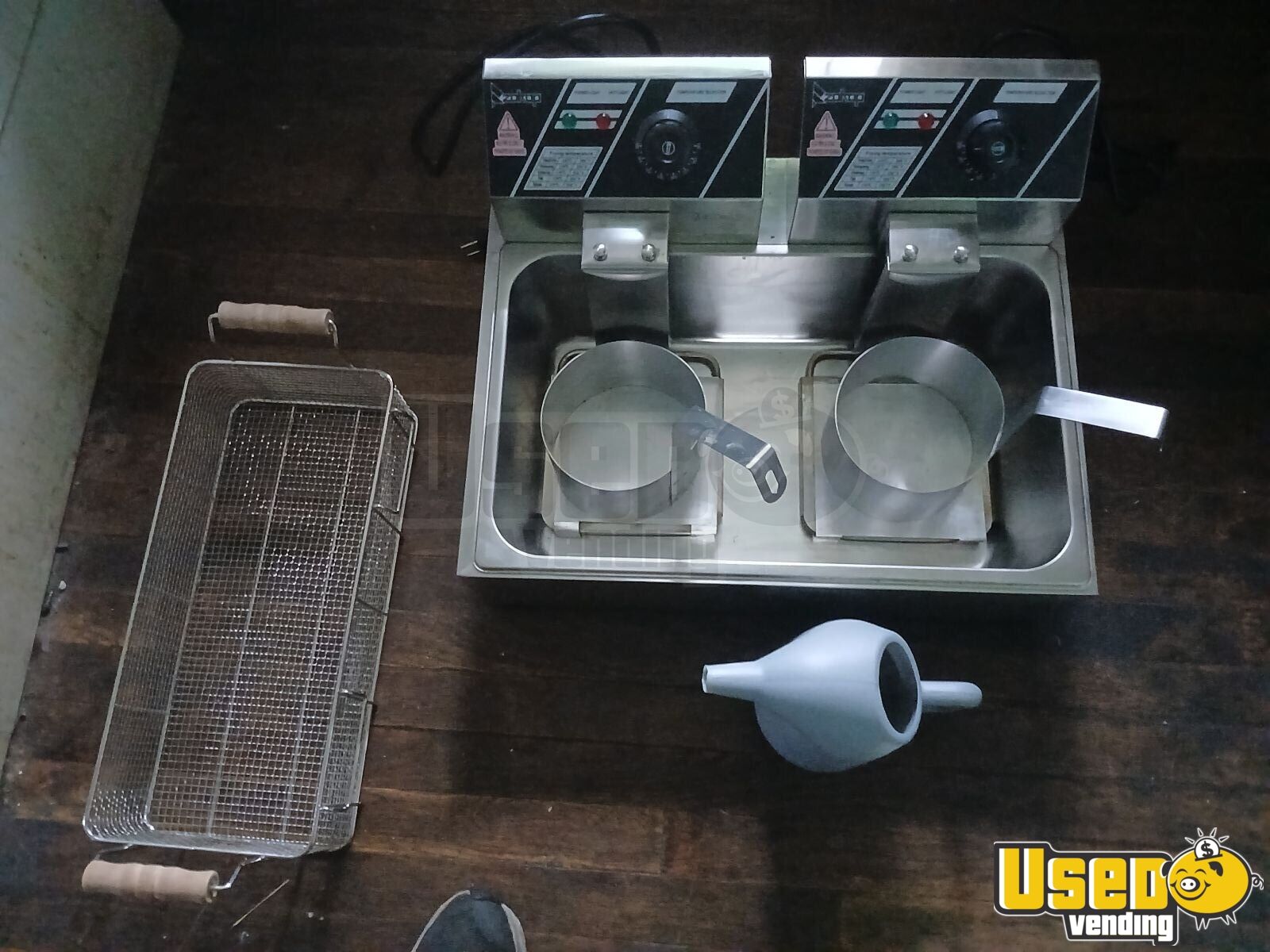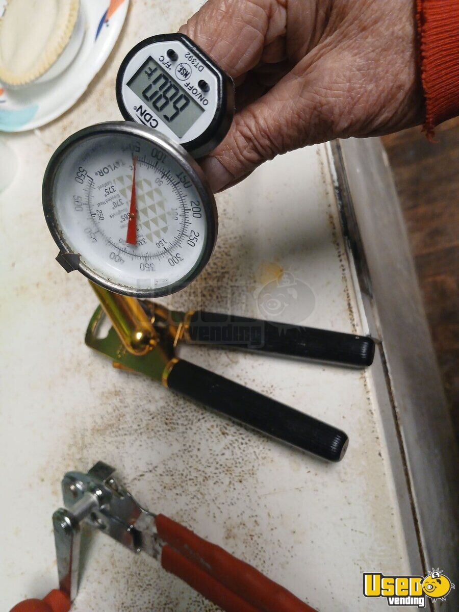 Everything works. Inside And outside lights. It is well lit up! Has Ohio health license. Had to pass inspection to get the health license. Was used for selling Italian sausage, polish sausage, fried cheese, hamburgers, French fries as well as Philly cheese steaks, deep fried veggies, boneless Pork chops and there's a lot of other stuff that you can sell too! The freshwater holding tank holds 20 gallons and Gray water holding tank holes 20 gallons.It is all self contained.