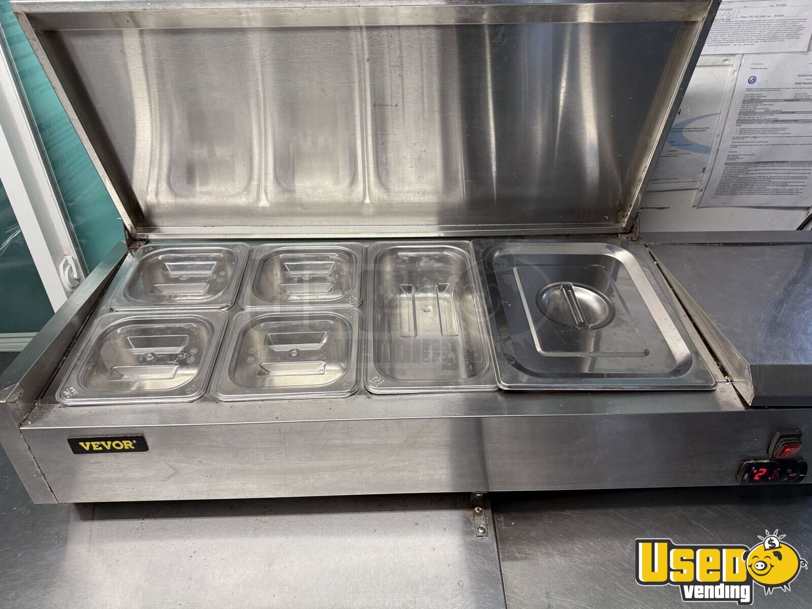 Service windows on the driver, passenger, and rear of the Trailer. 2025 kitchen build-out with all NSF equipment and a fire suppression system.