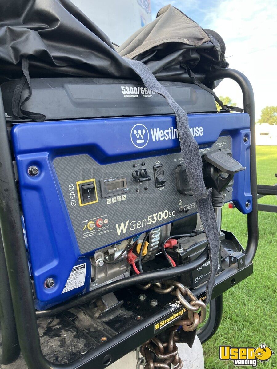 - Dual-fuel wood/propane pizza oven - Westinghouse generator (5300/6600 Watts) - Prep station cooler - Four sinks and stainless work area - Hot water heater and water tanks - Fold-down exterior counter and awning - Spare tire