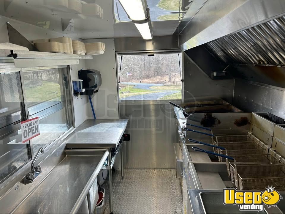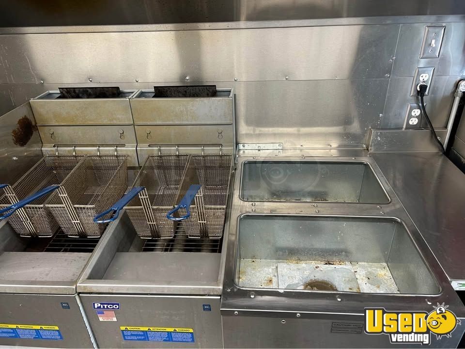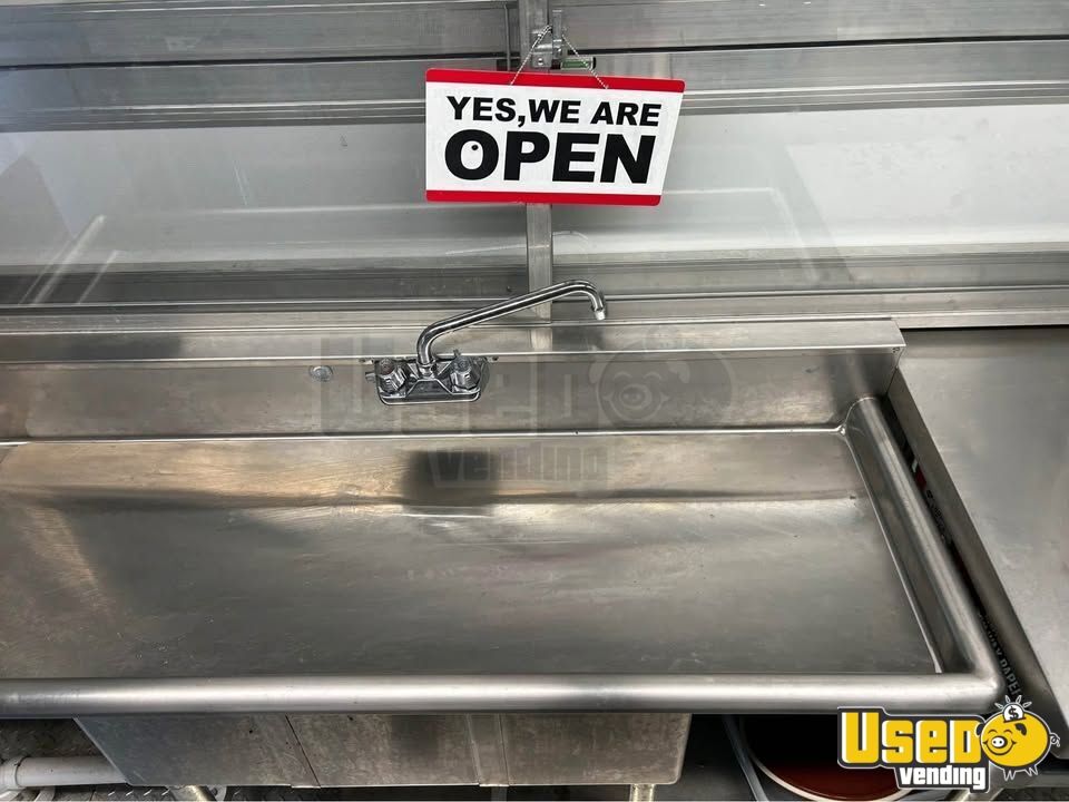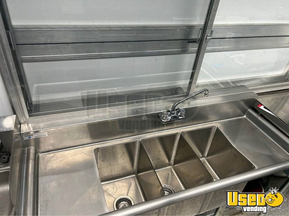 Standout features include: - Air conditioning - Concession window - Refrigerator and prep station cooler - Stovetop, flatgrill, and fryer - Exhaust hood and work table - Interior lighting and outlets - Hand-washing and triple sinks