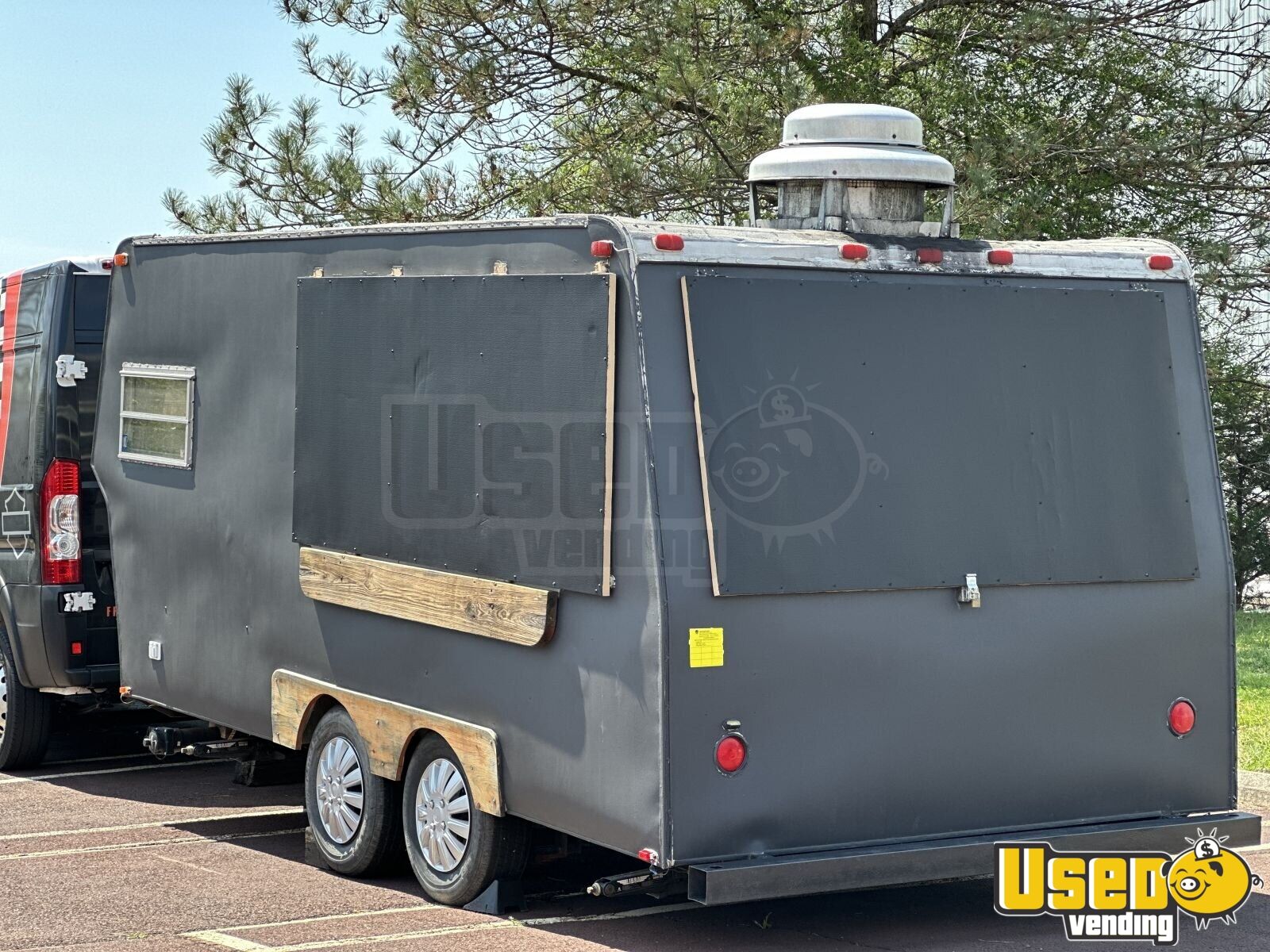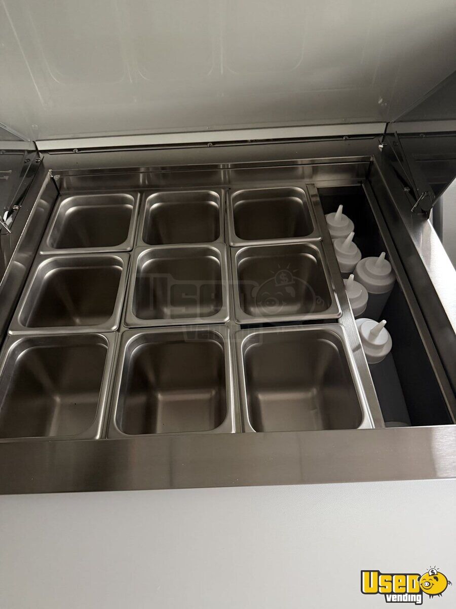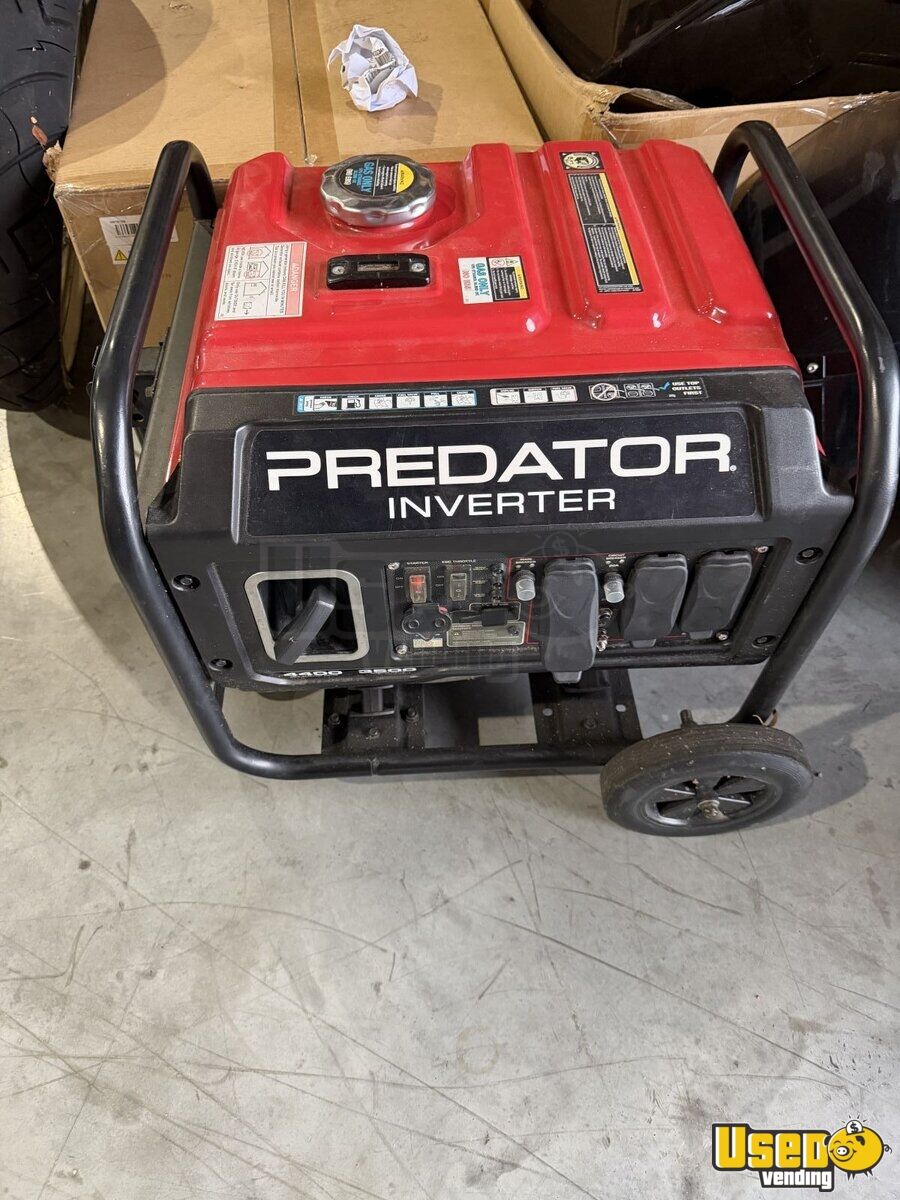 Standout features include: - Three concession windows and exterior customer counter - New coffee maker, hot dog roller, and prep station - Fryer and flatgrill - Refrigerated prep cooler - Triple sink setup with hot water heater - Generator and full lighting setup