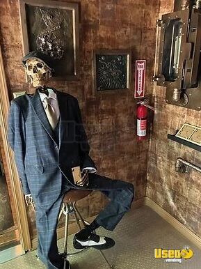 Step into adventure with this fully themed mobile escape room and merch trailer combo. This unique setup includes a custom 28' climate controlled escape room trailer and a 7' x 14' merchandise trailer stocked with inventory, making it ready for immediate operation and event use. Interested? Call us now!