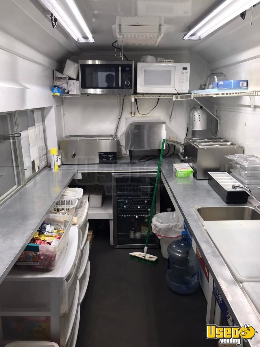 The trailer stands 6.5' high on the inside. It has a porch where the smoker is placed and additional working space as well.