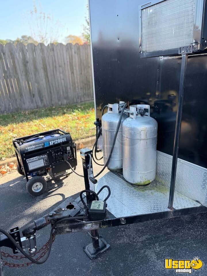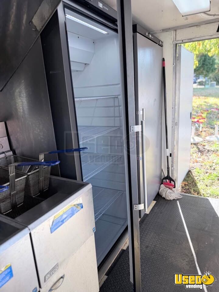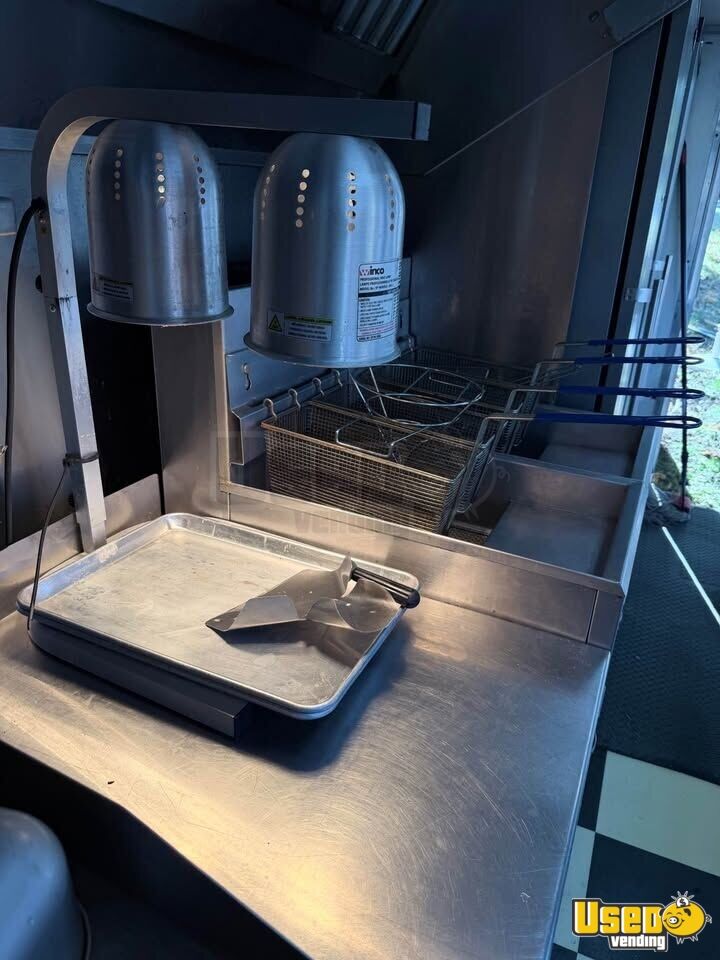 Standout features include: - Air conditioning and 9-ft exhaust hood - Dual 40-gallon propane tanks and 12,000W generator - Refrigerator, freezer, prep cooler, and chef base - Flatgrill, fryers, food warmer, and microwave - Triple sink, water heater, and Protex II fire suppression system