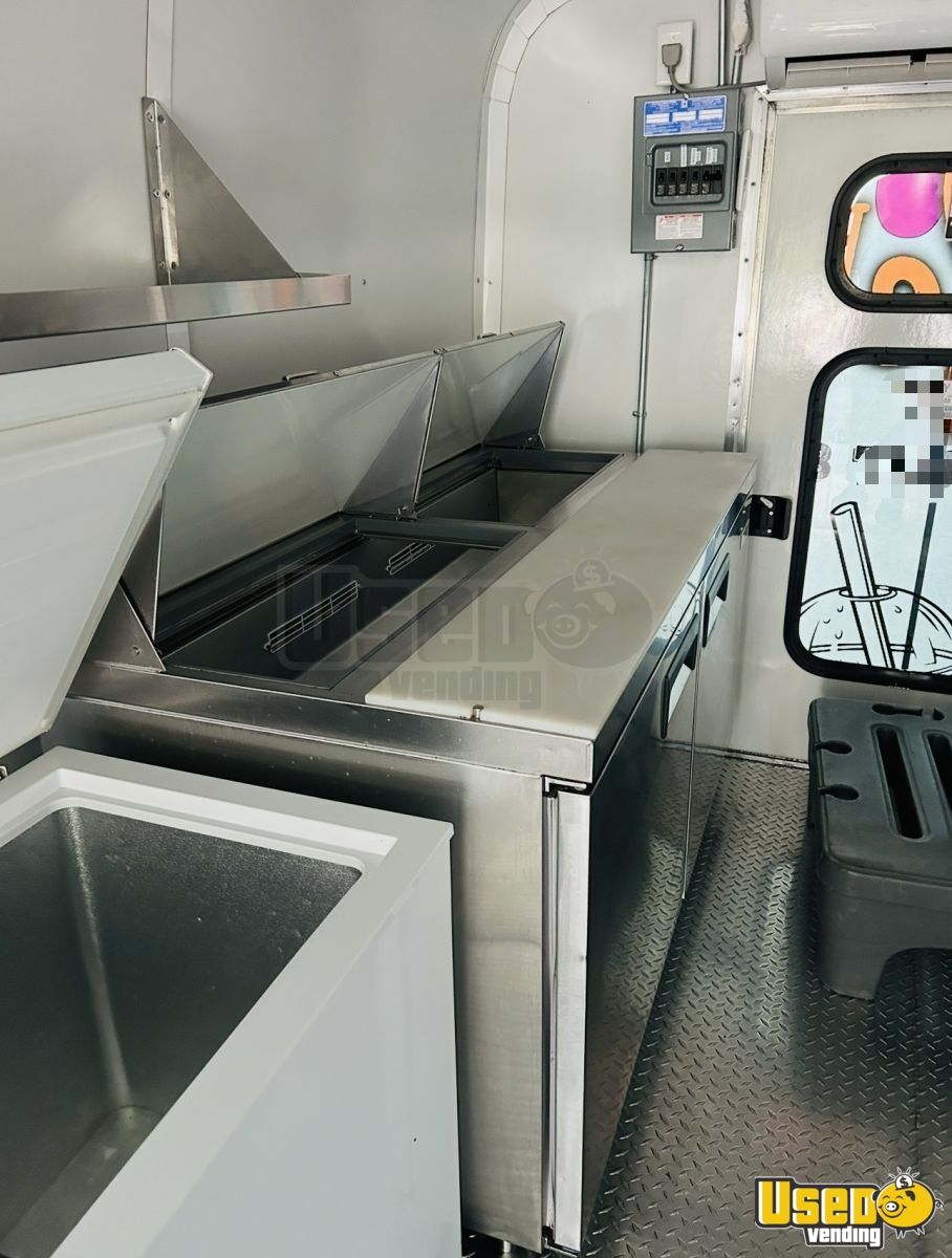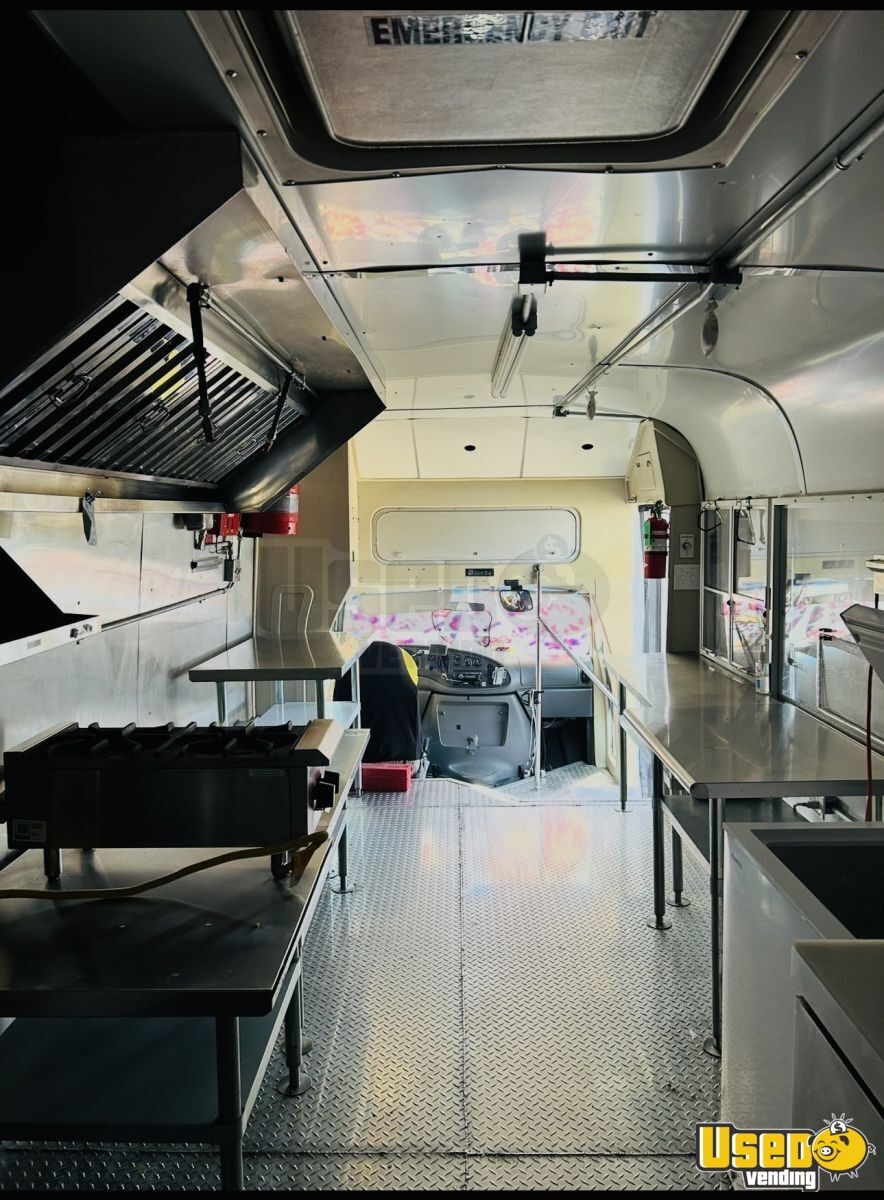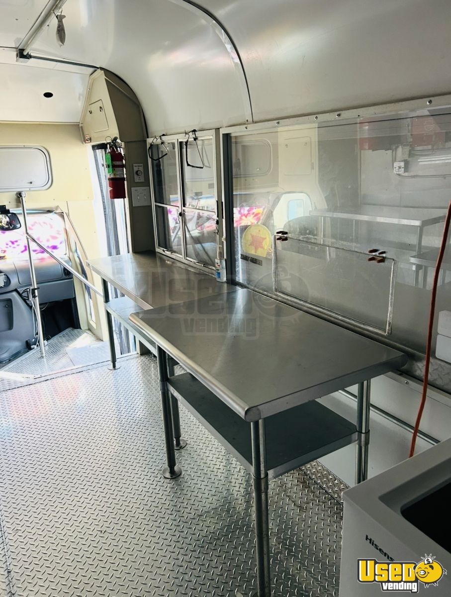 This well-equipped 2007 Ford all-purpose food truck is ready for immediate operation. It features a complete kitchen setup with cold and hot water, salad prep station, freezer, and dual sinks, making it ideal for a wide range of cuisines.