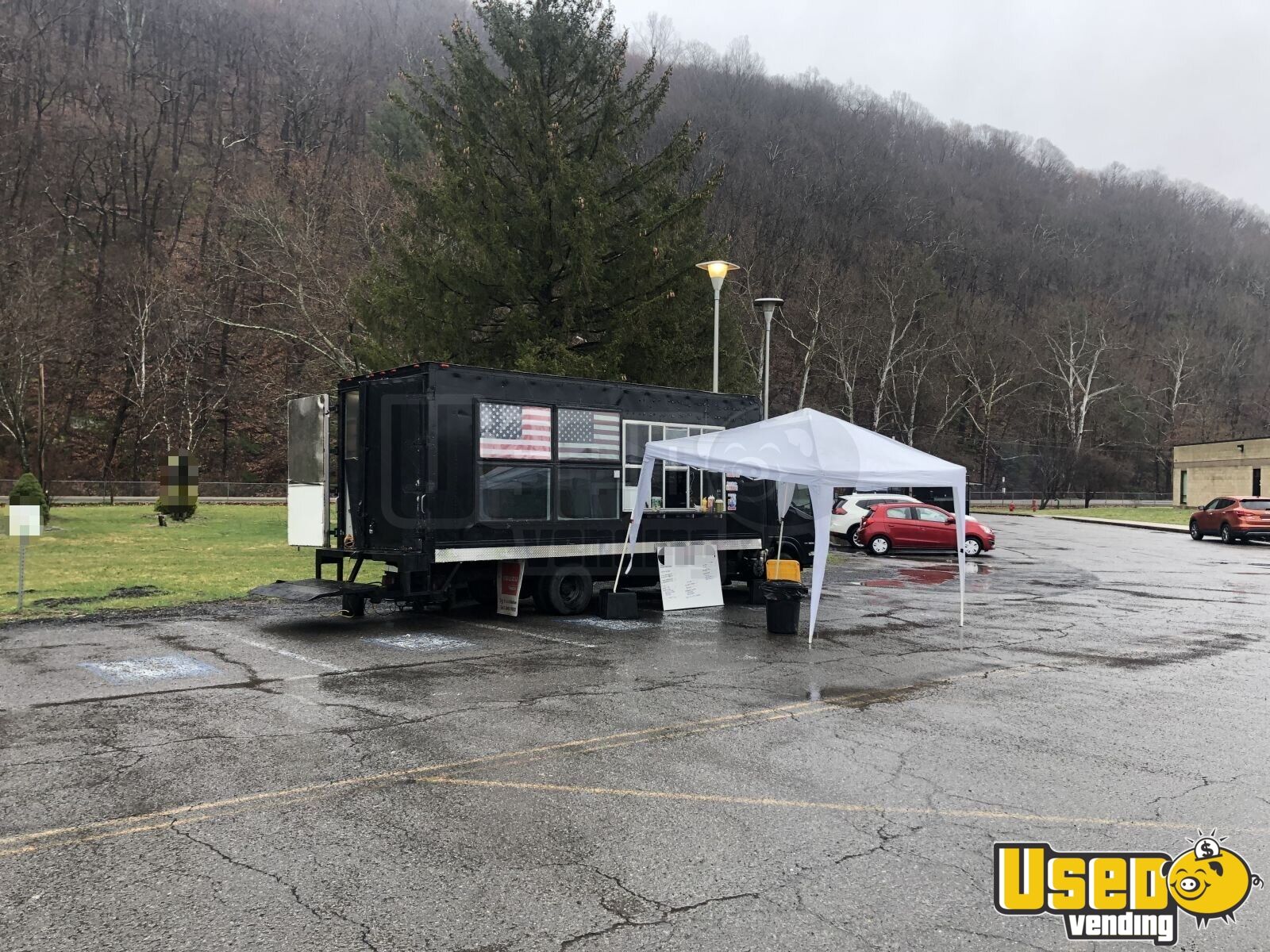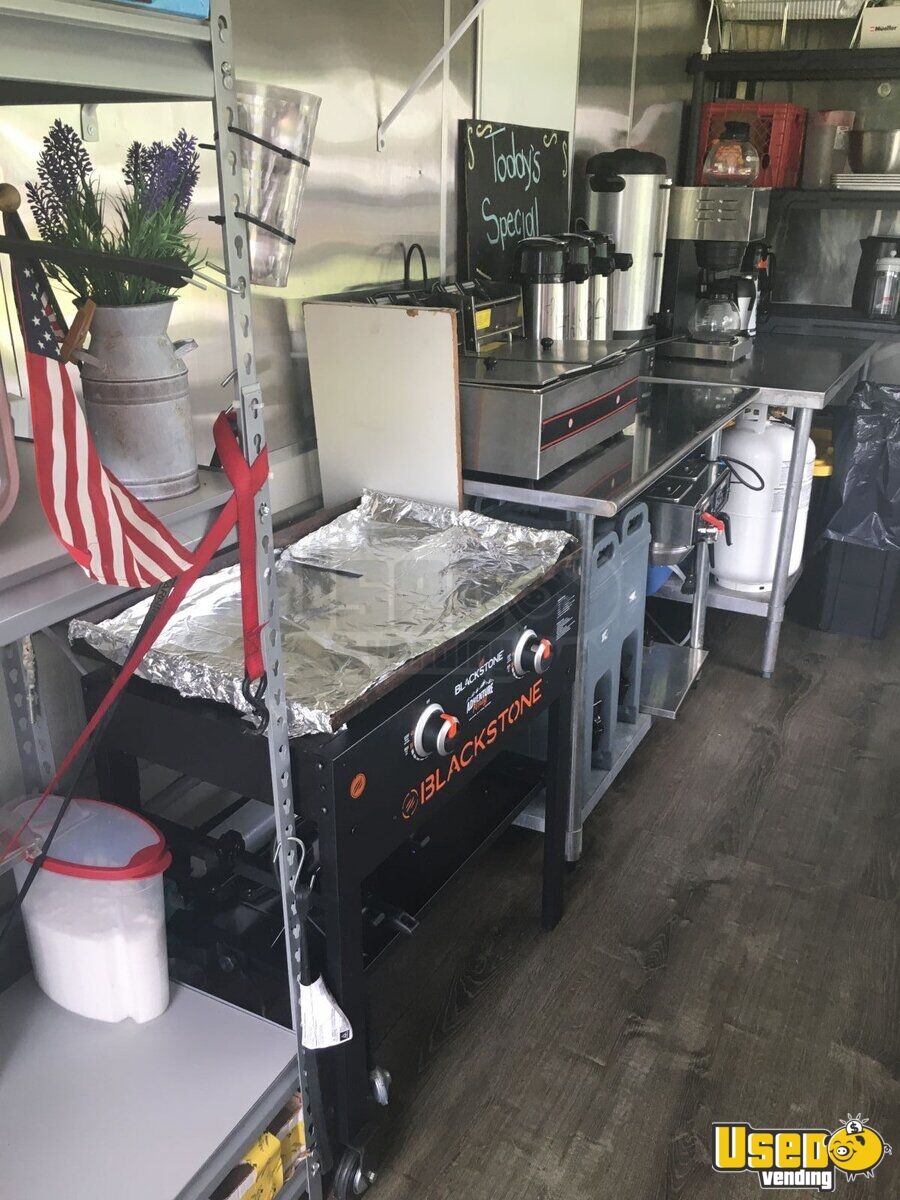 This vending truck measures 17' long and stands 7' high on the inside. It has a lift gate and 95,000 original miles.