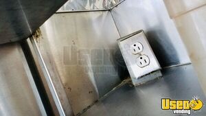 Stainless steel metal basically from the moment you step inside from floor to wall everywhere offering a reflective mirror shine. Some areas in the 90-degree corners always need degreasing. Some signs of usage but not necessarily wear. Currently using a box fan to serve as an exhaust fan, but seller will have a replacement added.