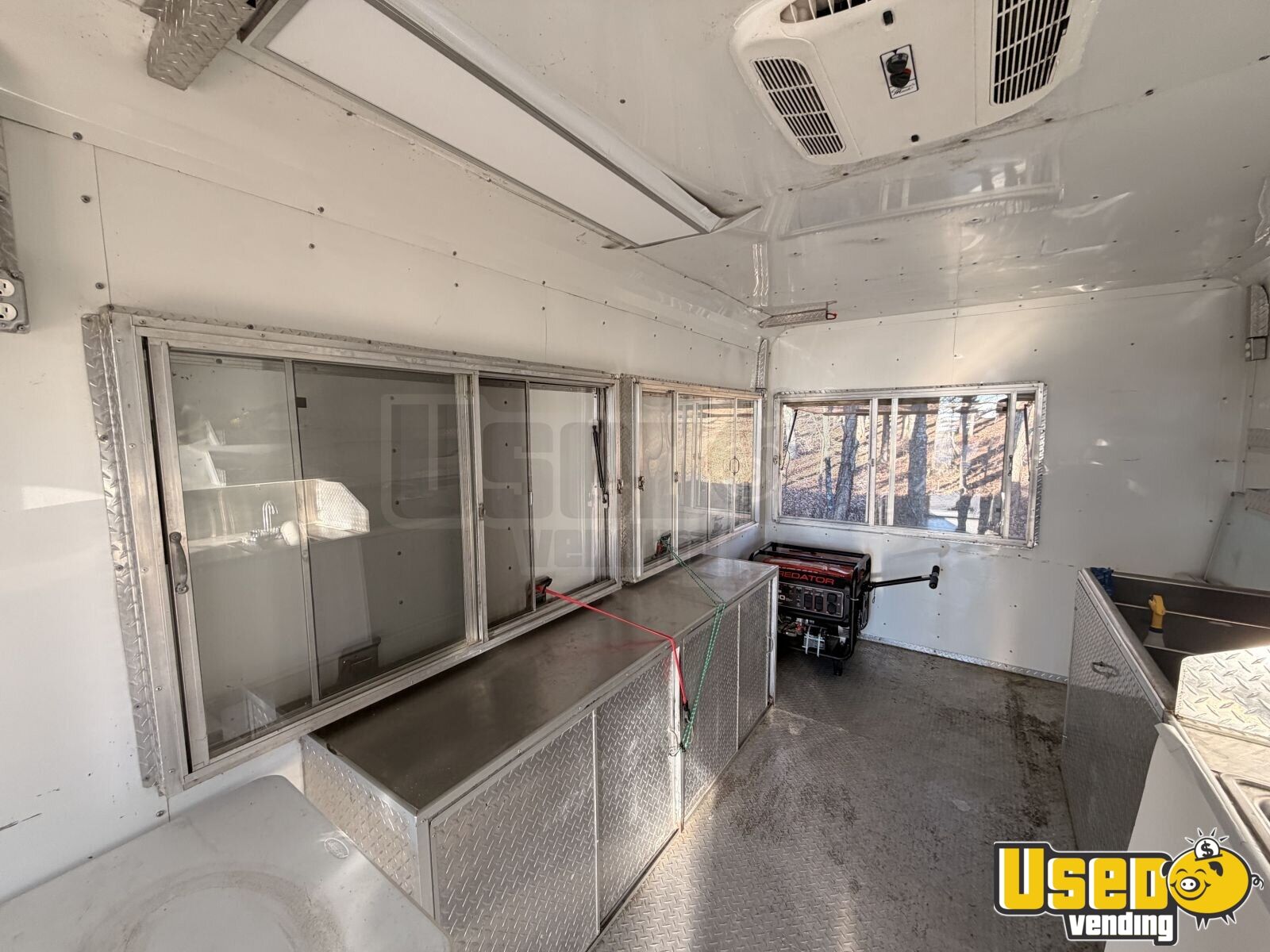 This 2013 20' kitchen food trailer features a fully operational setup ready for immediate use. With a bright yellow exterior, white interior, and updated electrical and propane systems, it’s built for convenience and efficiency.
