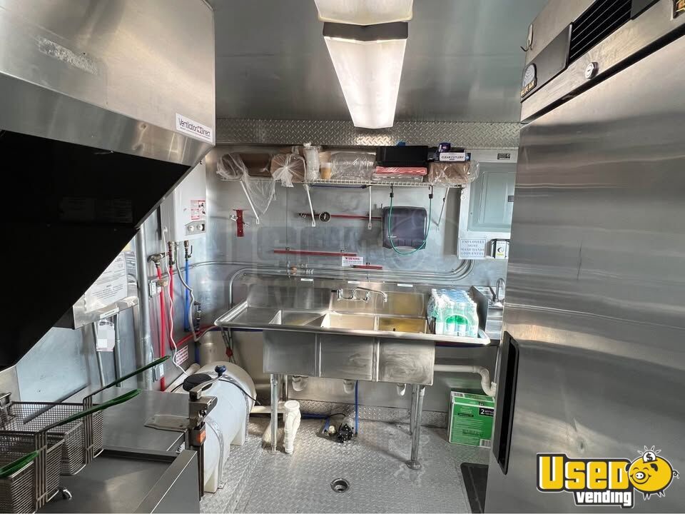 This food trailer offers functionality and adaptability, previously serving as a pizza, wings, and burger unit but easily customized for any cuisine. It’s built with durable materials and a convenient walk-in cooler, making it ideal for mobile food operations. Need to know more? Call us now!