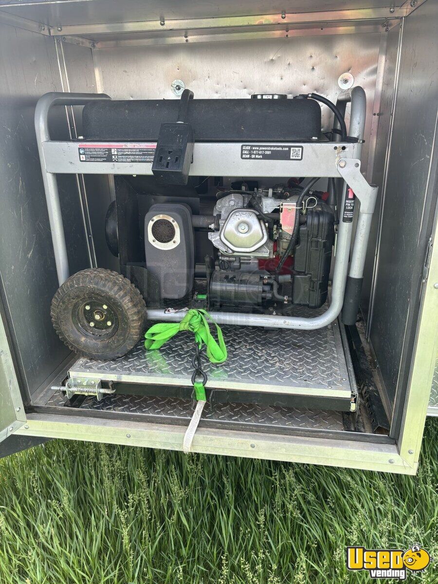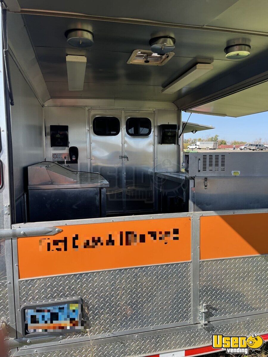 This food trailer, pulled by a 1982 Mac cab over with a storage box, offers a dependable setup for mobile culinary ventures. Its spacious 38' design provides versatility and functionality, making it ideal for serving a variety of foods on the go. Need to know more. Call us now!