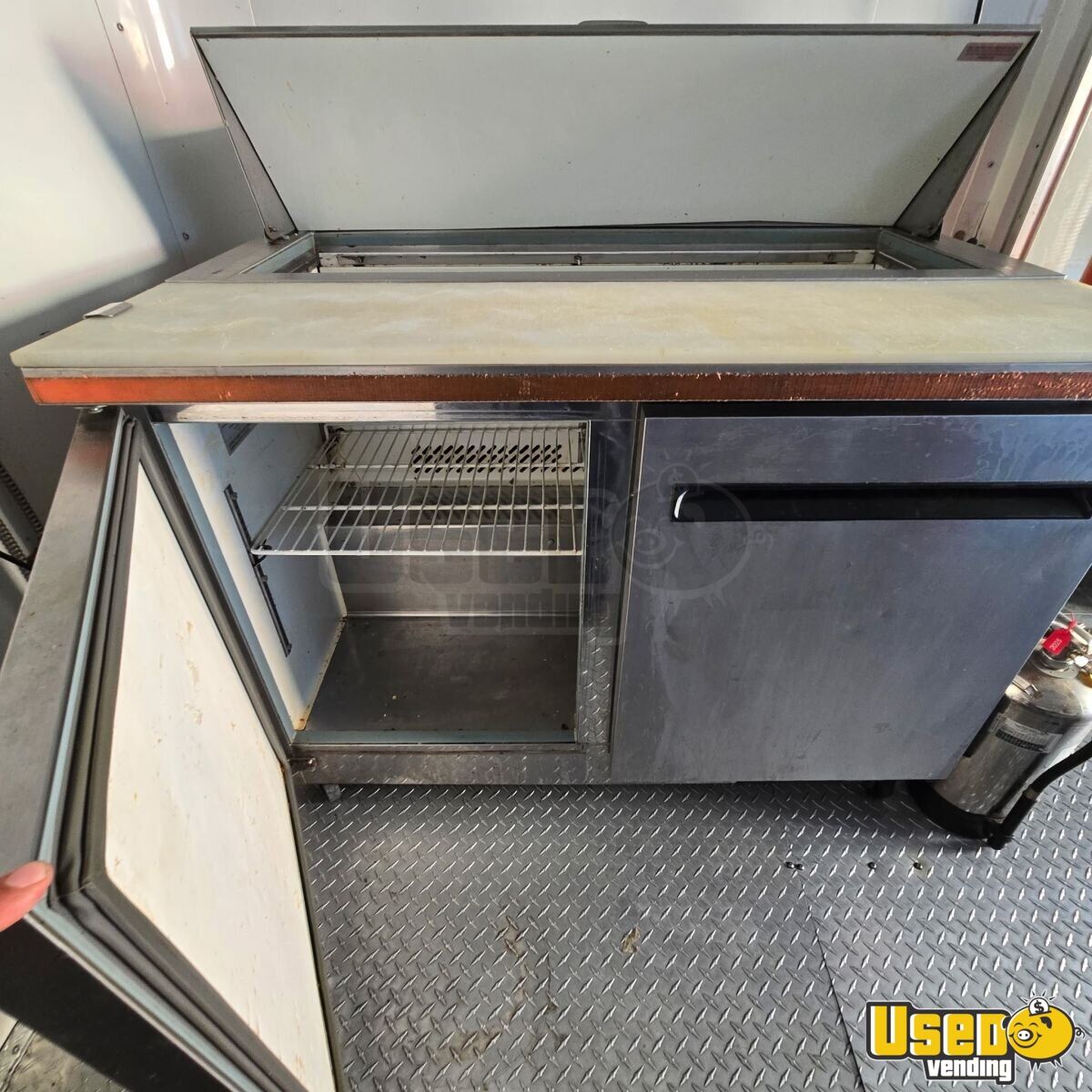 This great unit includes a reliable generator, propane setup, griddle, steam table, refrigeration, prep space, and ample storage.