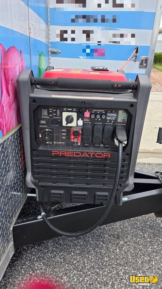 Standout features include: - Two new C. Nelson dipping cabinets (2023) - Refrigerated sundae bar (2018) - Three-head milkshake machine - Predator 9500W quiet inverter generator (2024) - Dual roof-mounted A/C units - Hot and cold water system - Stainless steel interior and serving tables