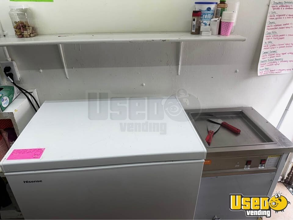 Notable features include: - Rear air conditioning unit - Southern Snow shaved ice machine - Rolled ice cream machine - Deep freezer and mini fridge - Triple and hand-washing sinks with hot/cold water - Interior and exterior lighting, shelving, and cabinetry