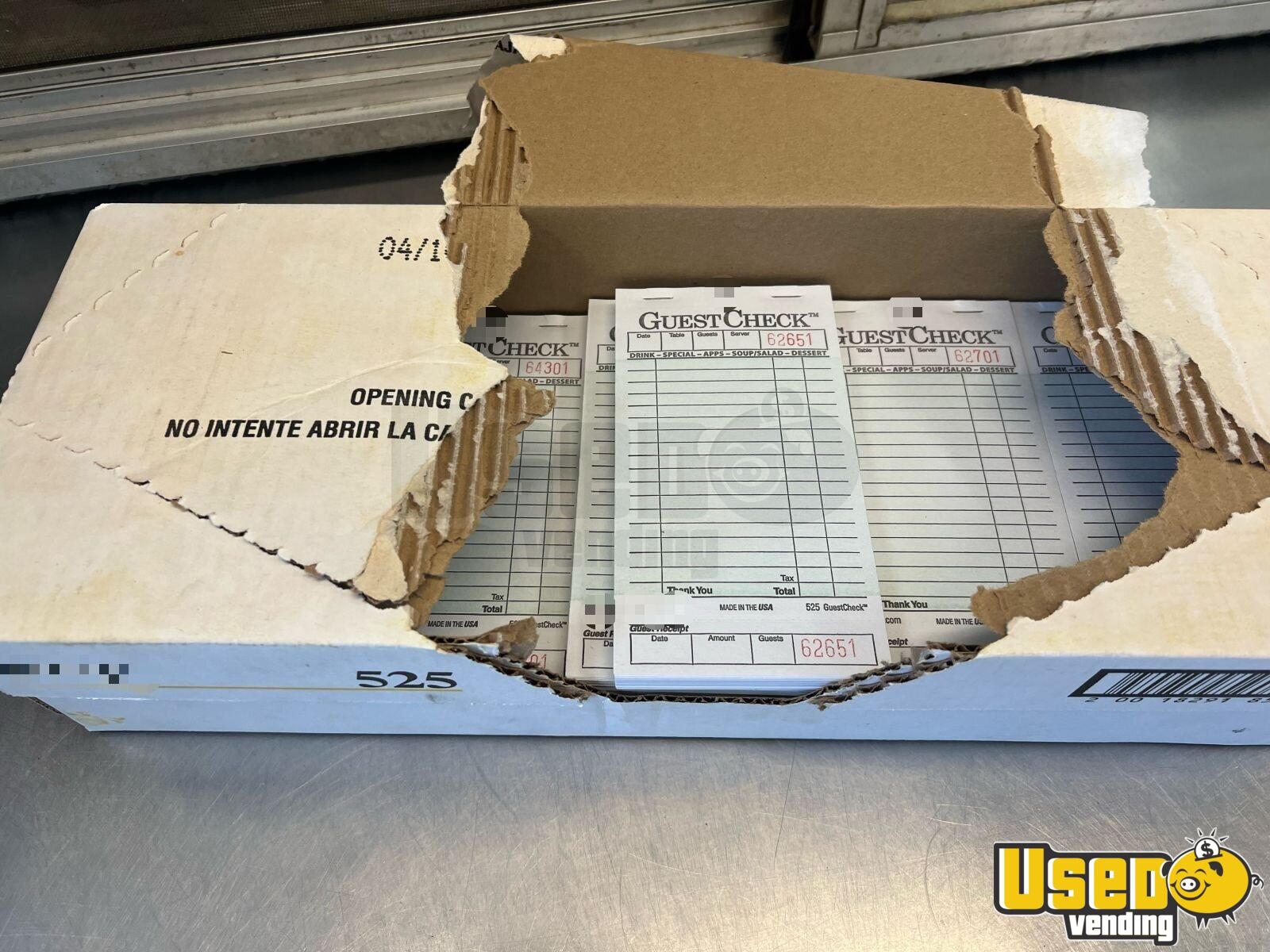 - box of sugar and sugar substitute, box of order pads, box of to go bags, boxes of salt/pepper packets