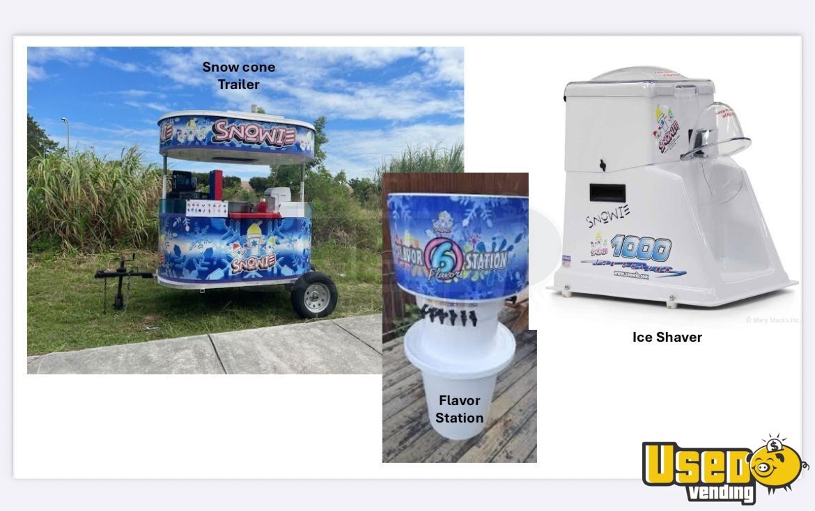 This 2017 Snowcone trailer by Snowie offers includes ice shaves and flavor station, reliable and efficient setup for serving cold treats. Compact and easy to operate, it’s fully functional and in very good condition, ideal for anyone ready to start or expand a shaved ice business.