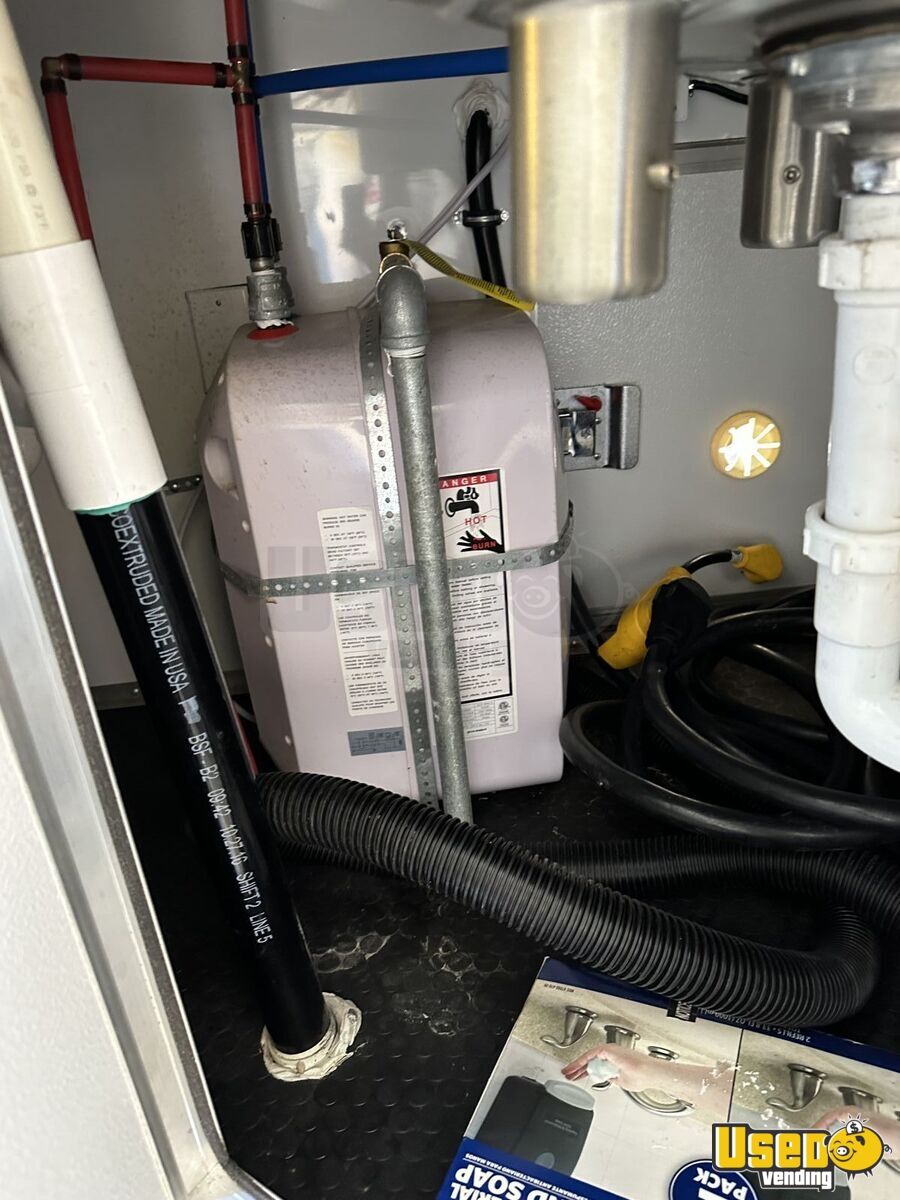 Standout features include: - Air conditioning and two concession windows - Generator included - Deep freezer and ample cabinetry - Diamond-plated aluminum flooring - Fire extinguisher and work table - Complete lighting and power setup - Full plumbing with triple sink and hot water heater - Bluetooth sound system