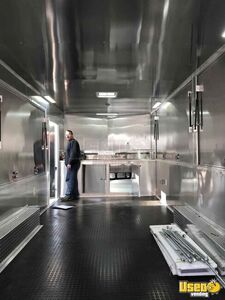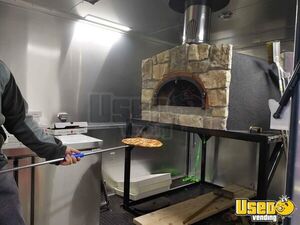 This is a custom-made wood-fired pizza trailer with everything you need to start working. It has a spacious and clean interior. The wood-fired oven has a capacity for up to 8 pizzas.