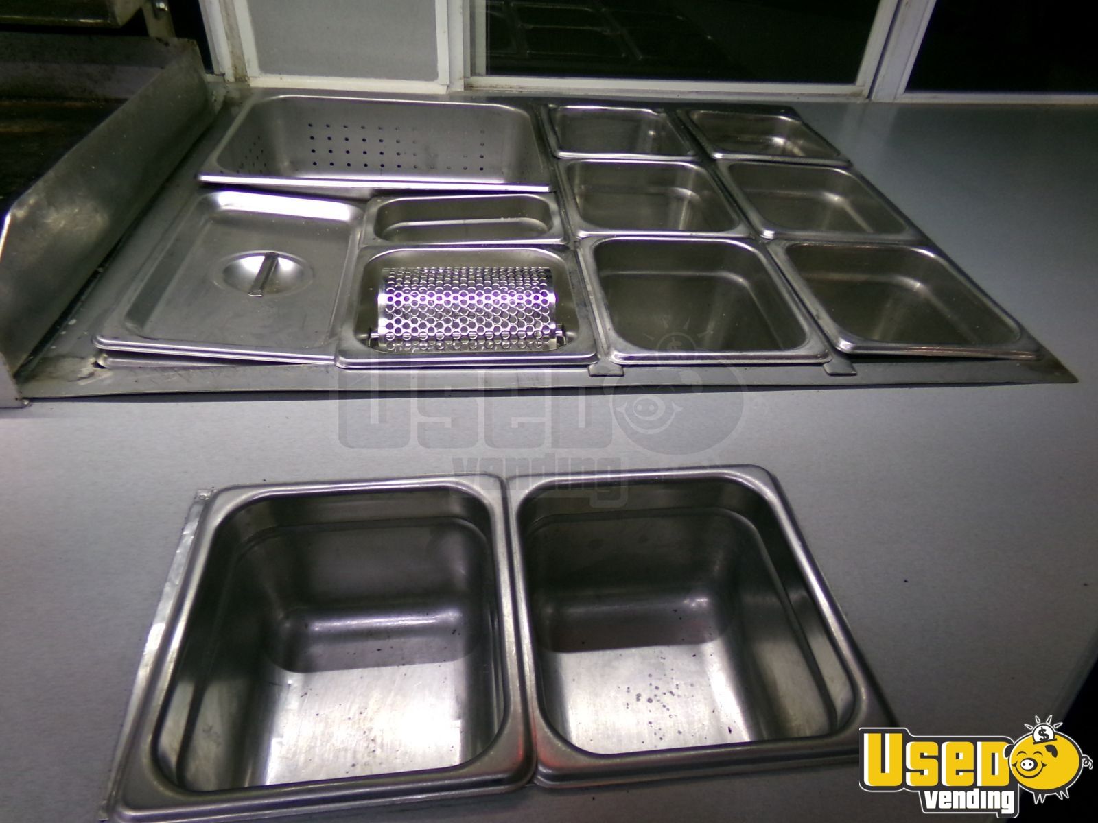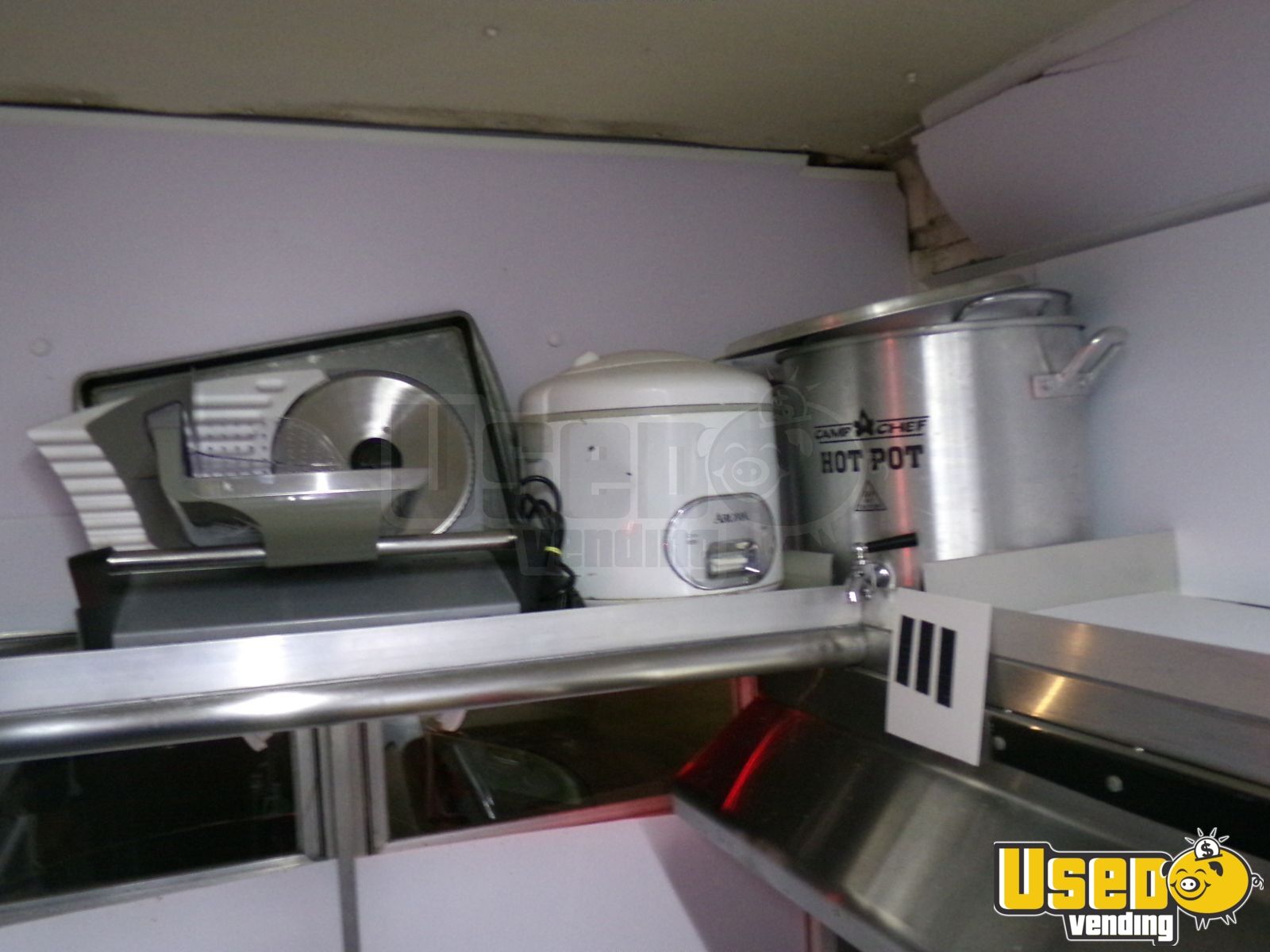 - Refrigerator, stovetop, flatgrill, warming cabinet, food warmer, and microwave