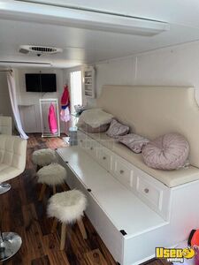 This trailer converts into a self-contained space created for children between 4-16 years old. With this unit, parents don’t have to host, plan, or set up anything for their kid’s party, because the venue will drive up right outside of their home. It has bar stools, benches, fold tables, mirrors, dress closet, TV and much more.