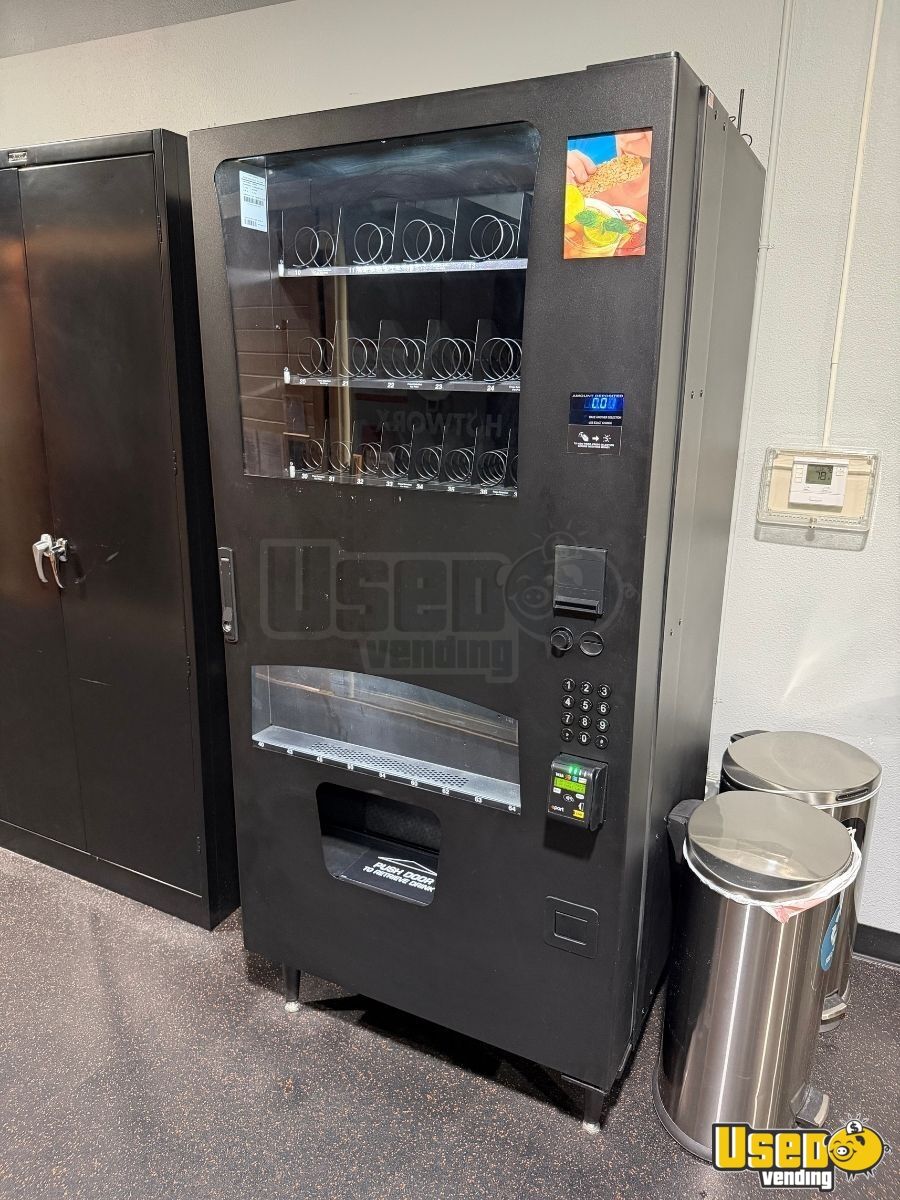 Futura Combo Vending Machine, model 3589, manufactured in 2018. The unit is a combo model designed to dispense both snacks and beverages. Note that the refrigeration system is currently unreliable and will require maintenance or repair.