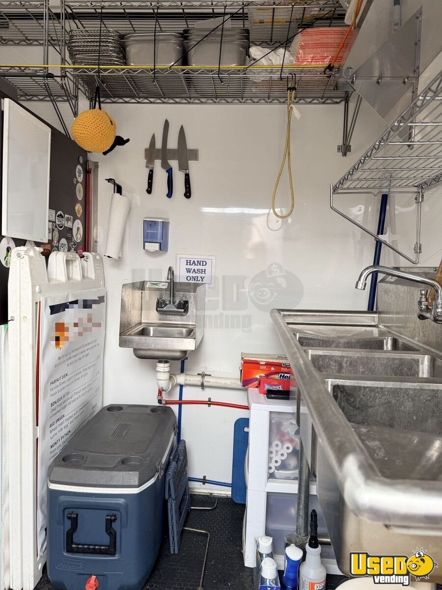 This 2019 full kitchen food trailer offers a ready-to-roll setup for any aspiring chef or entrepreneur. Designed with high ceilings, durable stainless-steel finishes, and a large service window, it provides both comfort and functionality for smooth food service operations.