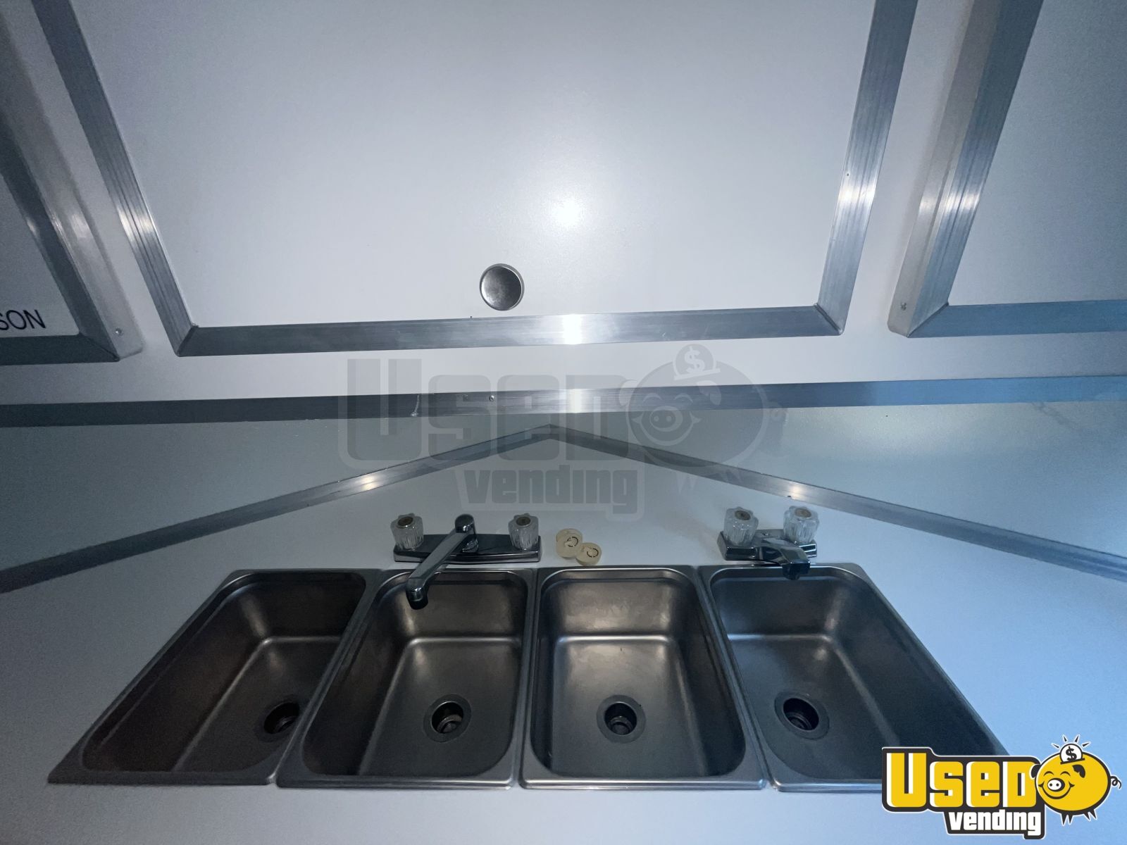 - Triple sink, hot water heater, and fresh water tank