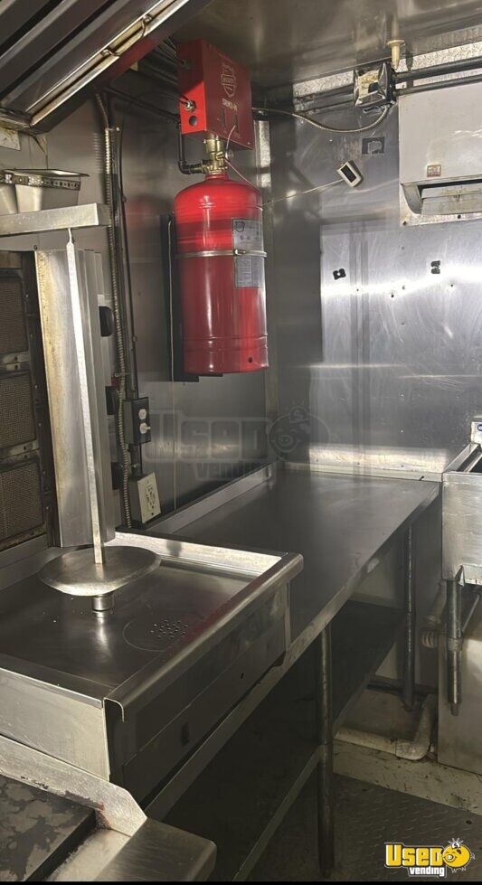 Standout features include: - Air conditioning and stainless-steel wall covers - Concession window with exterior counter - Multiple refrigerators and freezers - Flatgrill, fryer, microwave, and exhaust hood - Fire extinguisher and surveillance cameras