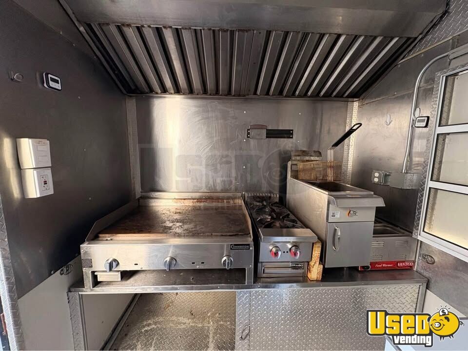 This 8' x 16' used kitchen food trailer offers a durable setup ready for business. Built in 2019 with a kitchen installed in 2024, it provides ample workspace, reliable storage, and efficient equipment suitable for various food operations. Call today to learn more!
