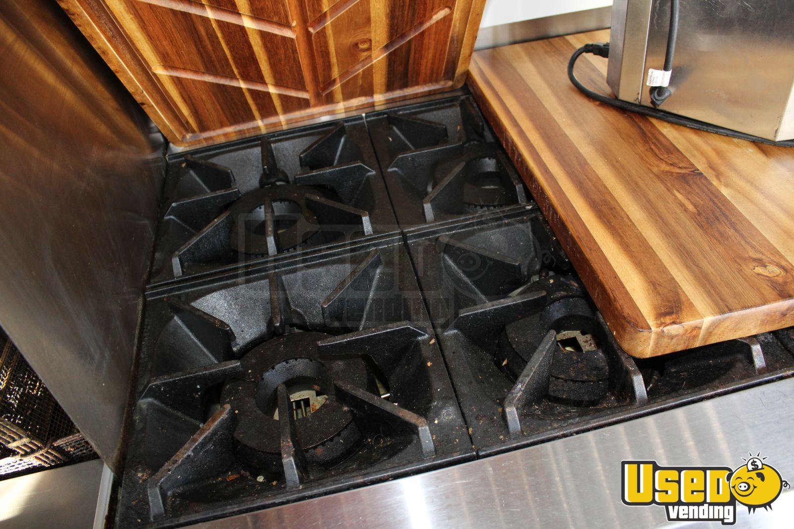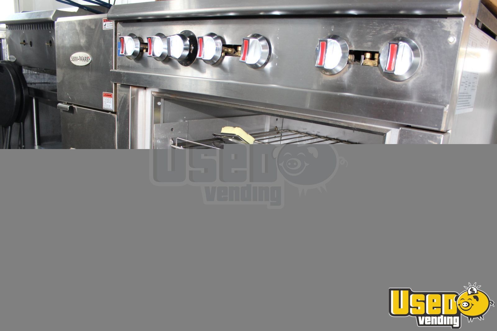 - 6-burner stovetop, oven, fryer, flat grill, and prep cooler