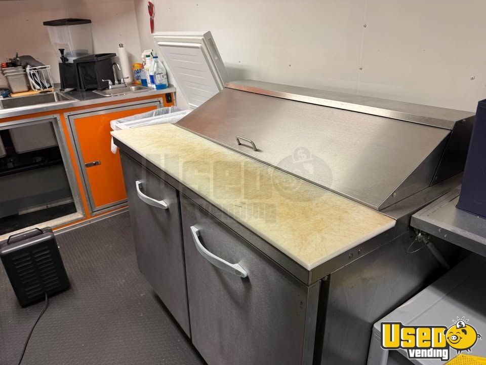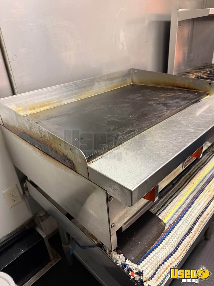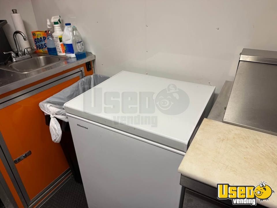 This food trailer offers a spacious workspace designed for efficient mobile cooking operations. Featuring a 22' interior and an 8' porch, it provides plenty of room for food prep and customer service. Call today to learn more!