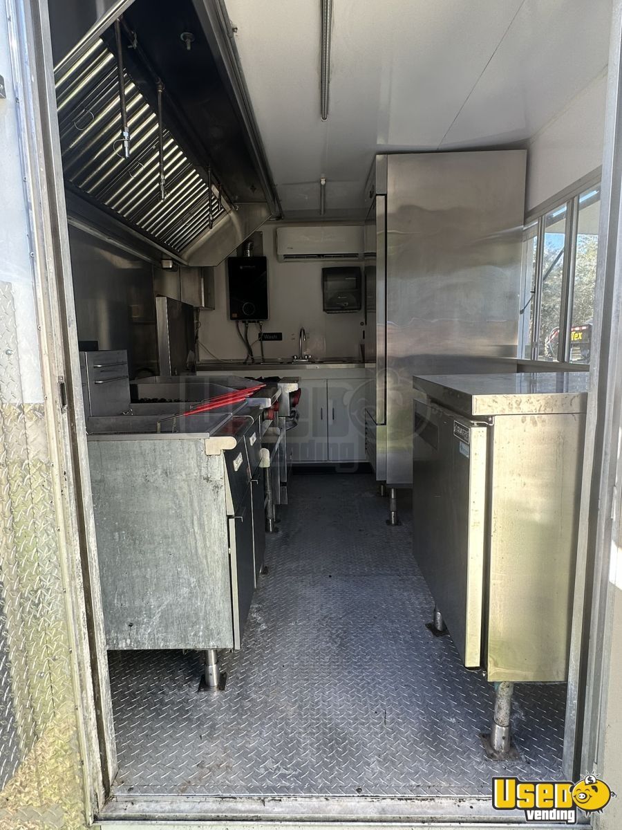 This 2020 food kitchen trailer offers a professional mobile cooking space ready for operation. Built with durable steel construction and an 8-foot hood system, it includes a dependable Pro-Fire suppression system to ensure safety and efficiency on the go.