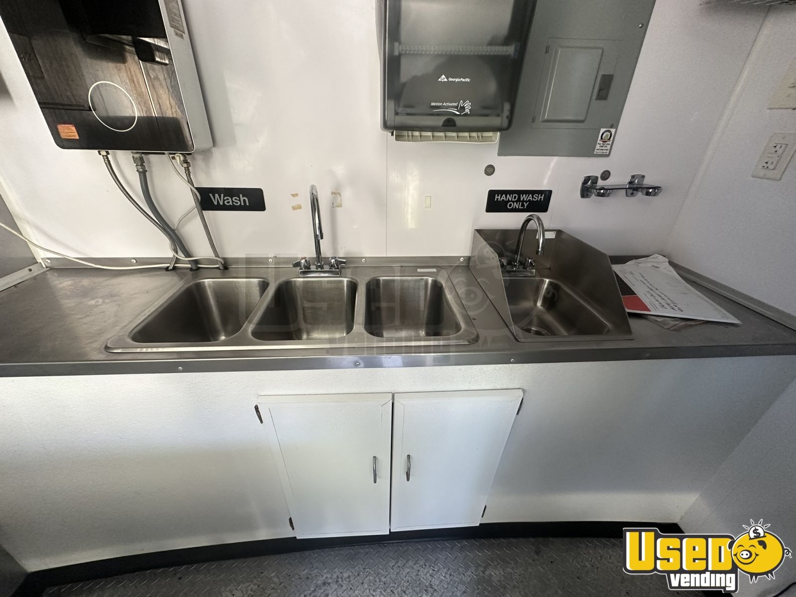 - On-demand water heater and triple sink setup