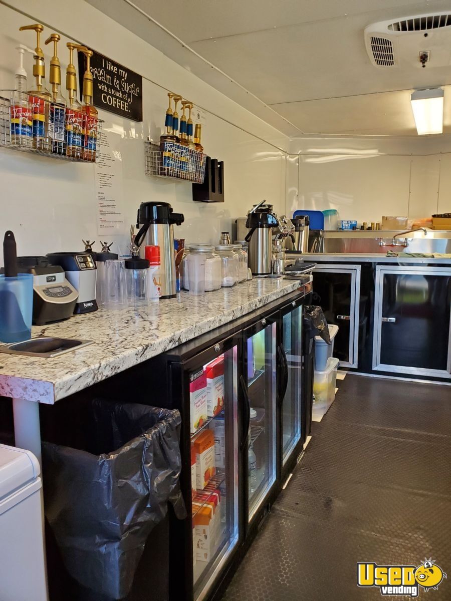 Standout features include: - Air conditioning unit - Fold-down customer counter - Counter-height refrigerator and deep freezer - Espresso and Bunn coffee machines - Two Avamix blenders - Square POS system - LED lighting and 50 AMP breaker panel - 42-gal fresh and 48-gal gray water tanks
