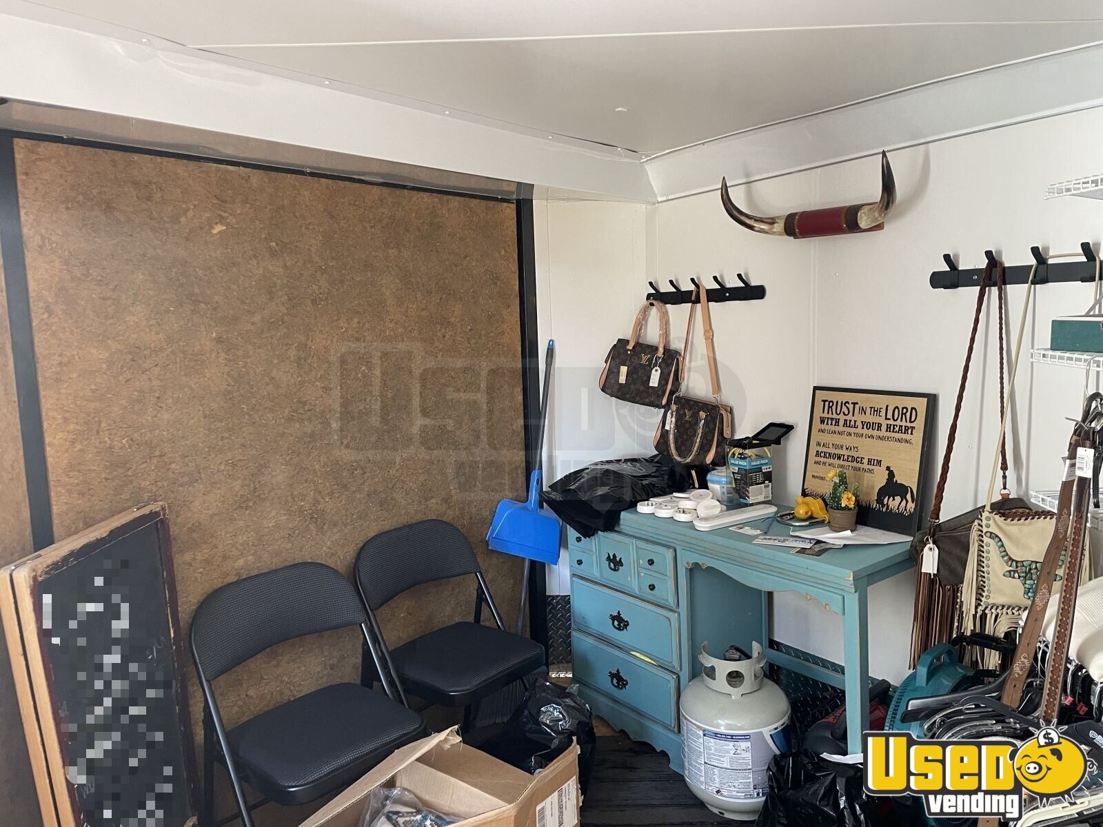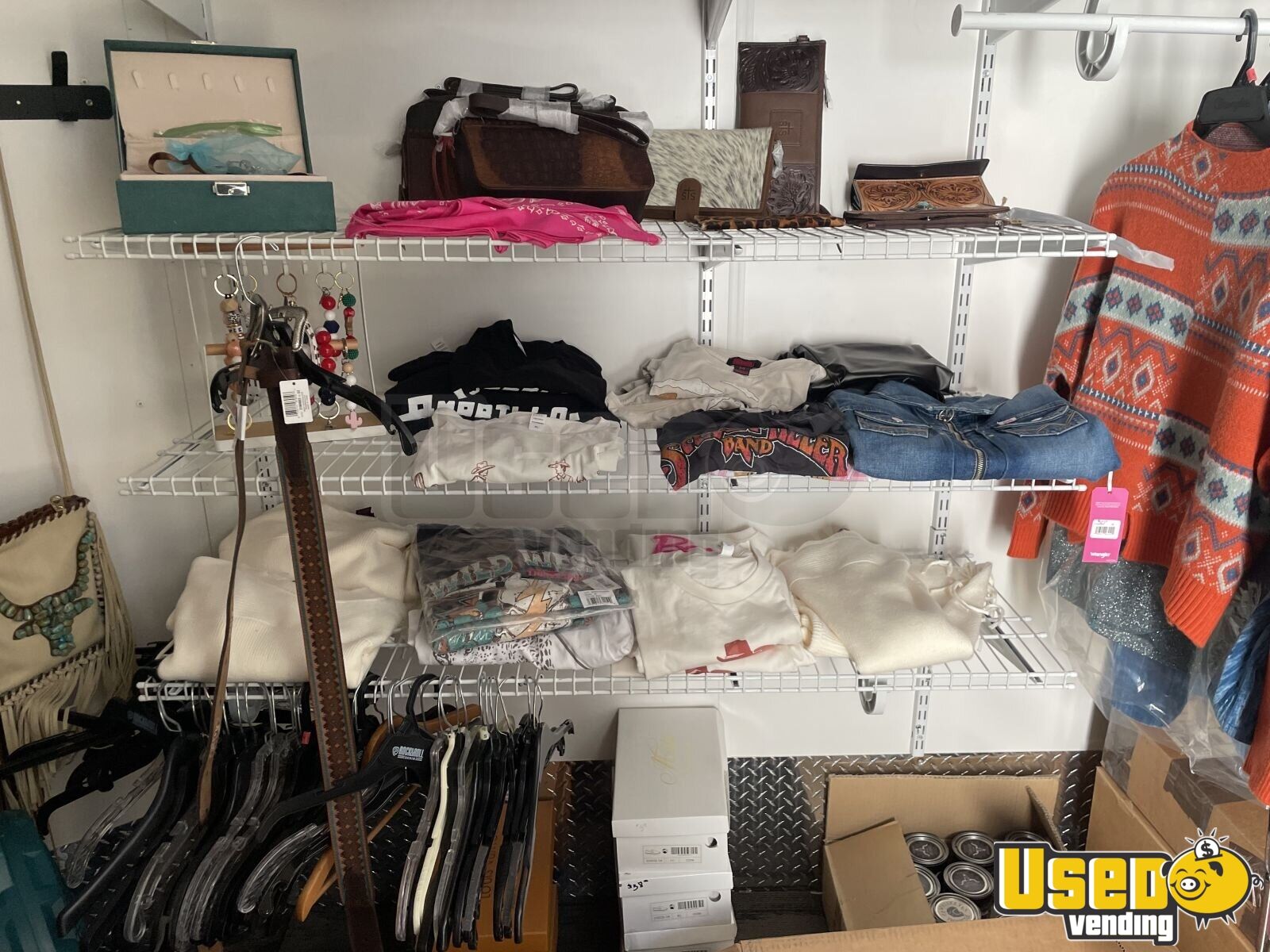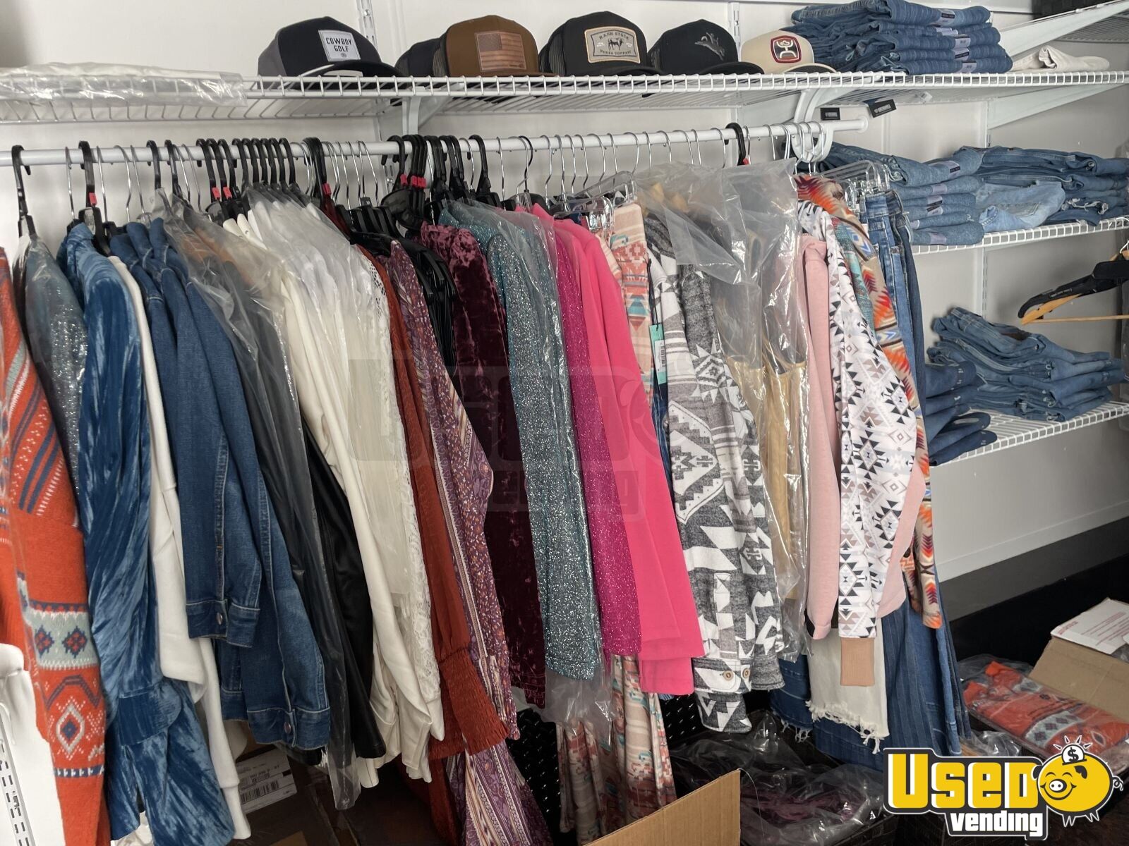 This 2021 27’ V-Nose box trailer is designed for mobile retail success, offering a spacious setup ideal for walk-through shopping experiences. Previously used for western apparel sales, it’s ready to roll as a stylish mobile boutique for any fashion concept.