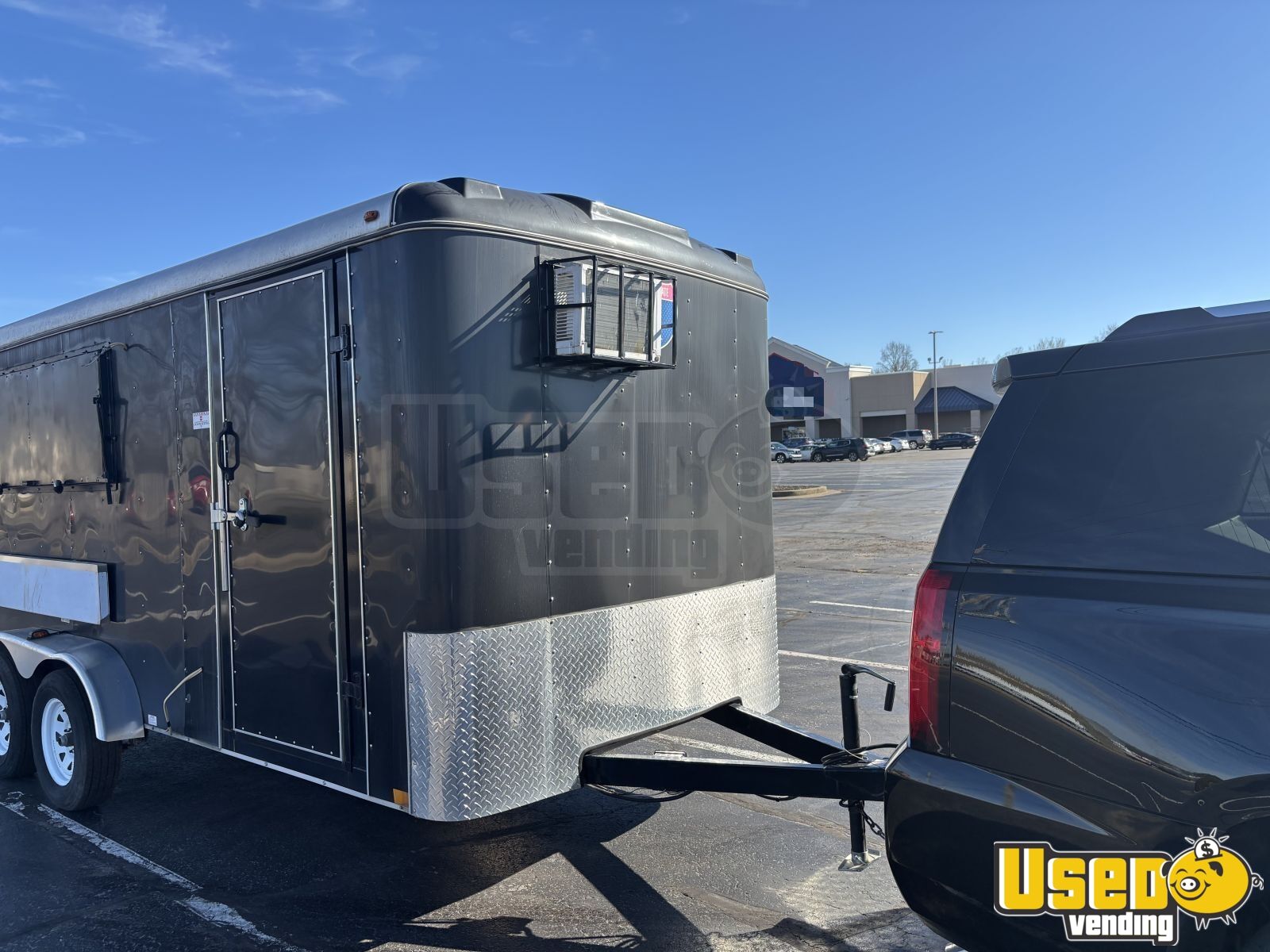 Standout attributes include: - 16’ Interstate Victory trailer with insulated walls and exterior serving counter - 7’ Hoodmart vent hood and exhaust - Dual concession windows with 6’ serving shelf - Triple sink and separate hand sink - 30-gallon fresh and 46-gallon grey water tanks - AC unit and LED lighting assemblies - Seaflow water pressure pump and 4-gallon water heater - G-Floor Coin flooring and installed insulation - No cooking equipment The trailer is empty and will need the equipment in the boxes installed. The only thing in the trailer is the a/c.