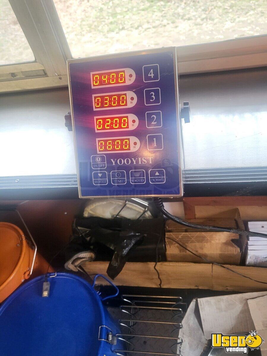 This trailer is in good condition and ready for the road. Equipped with a propane gas peerless oven, four stone shelves, and is temperature controlled. Plenty of stainless steel work space and some shelving.