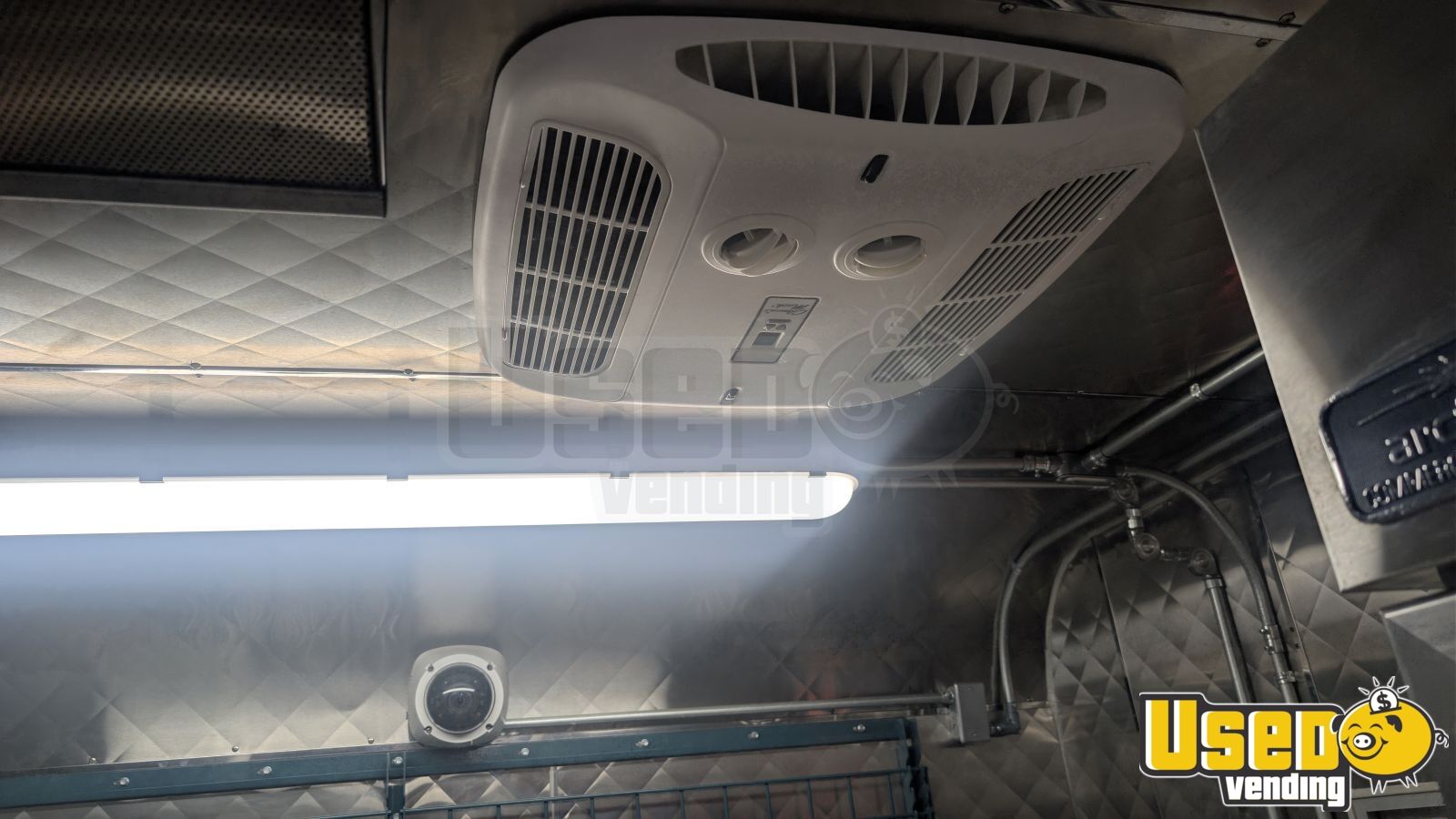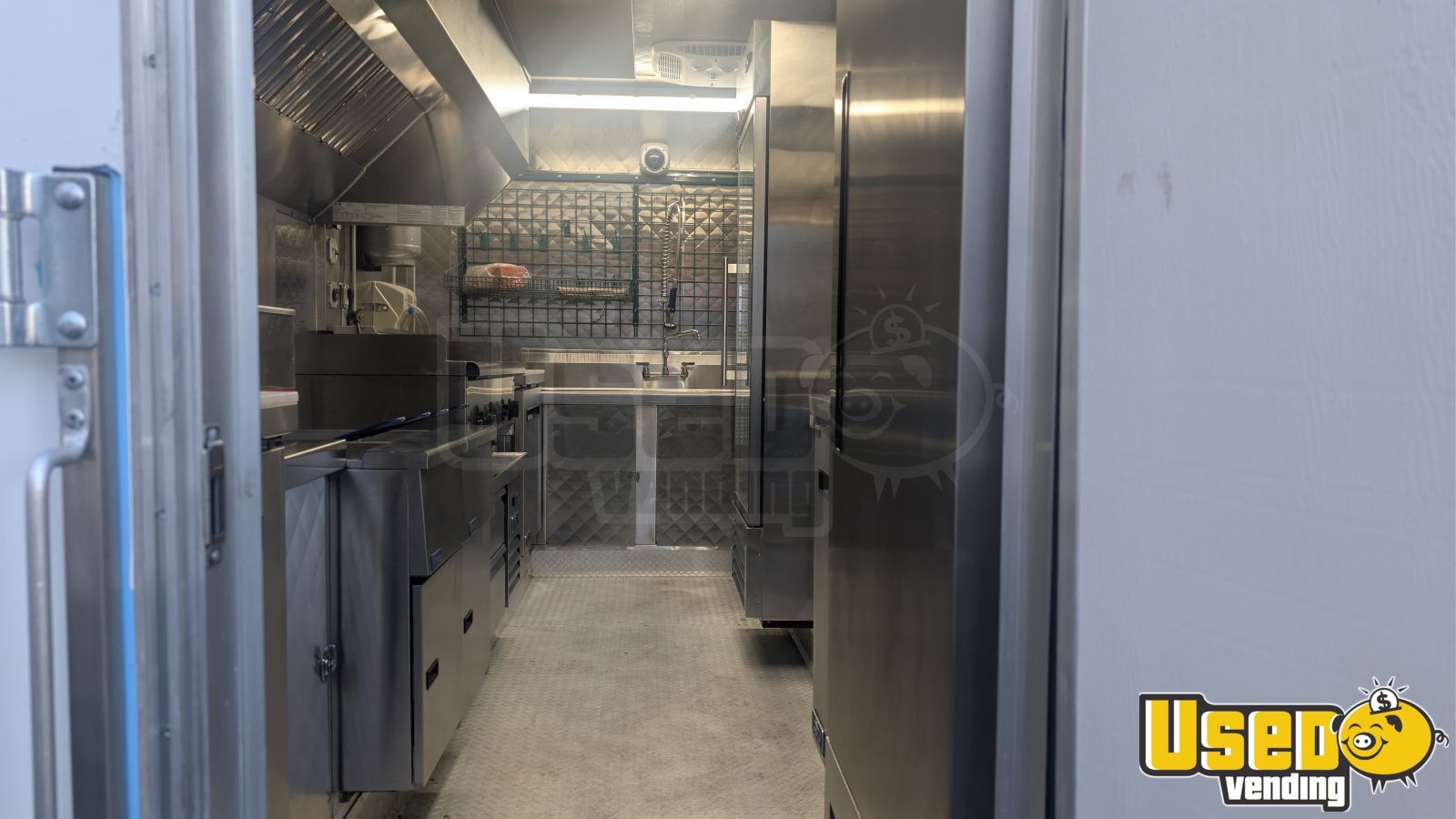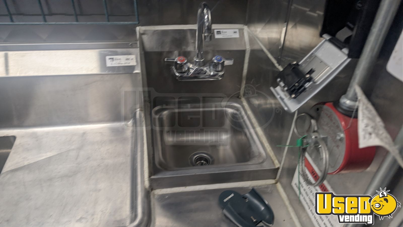 - Air conditioning, stainless steel walls, and triple sink setup