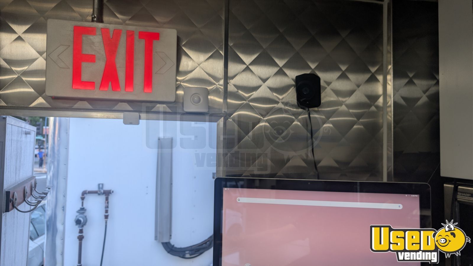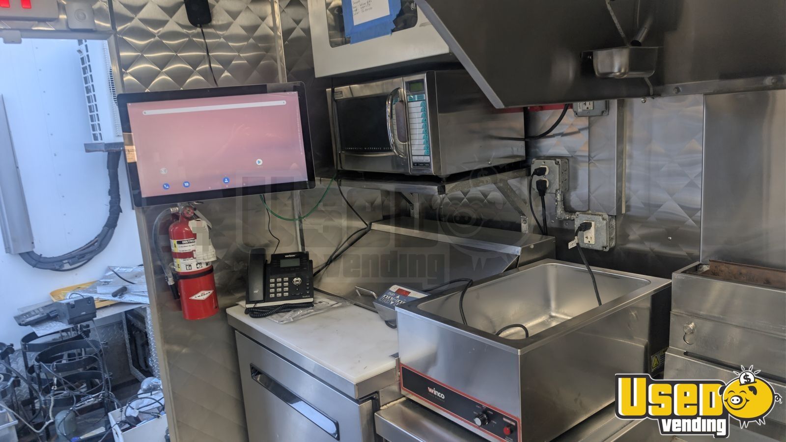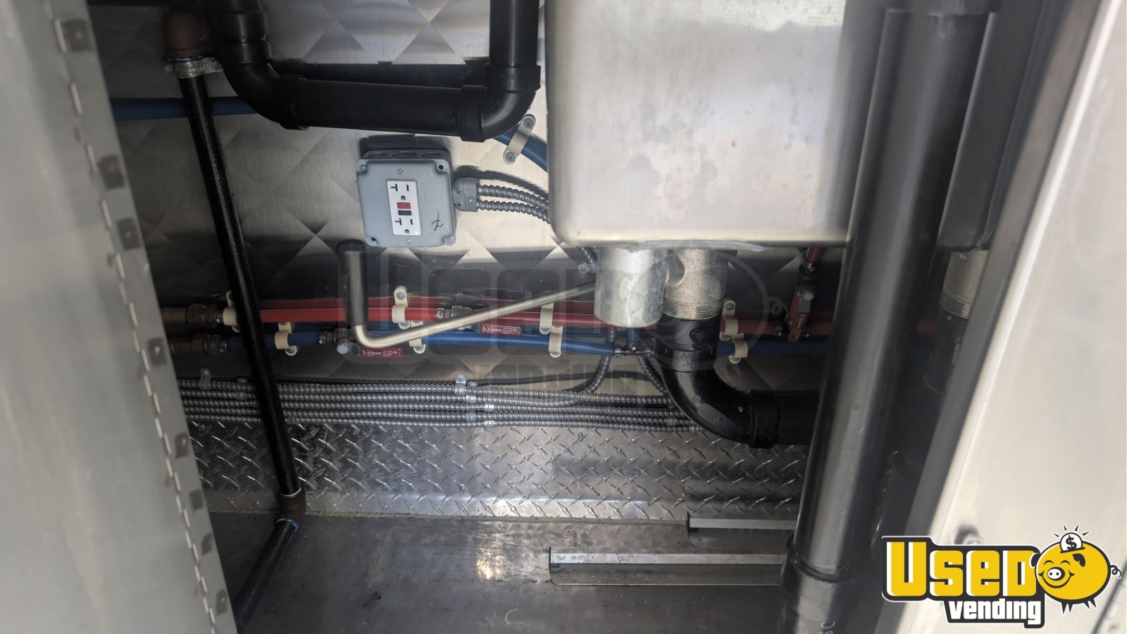 - Air conditioning, stainless steel walls, and triple sink setup