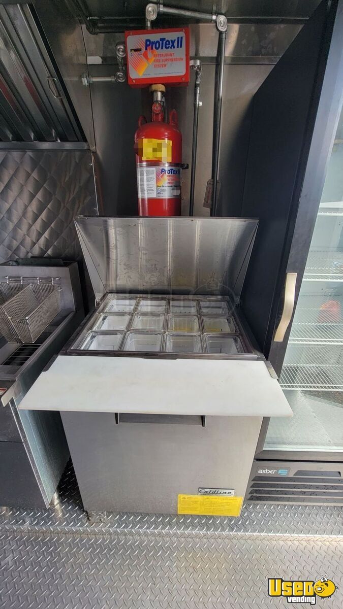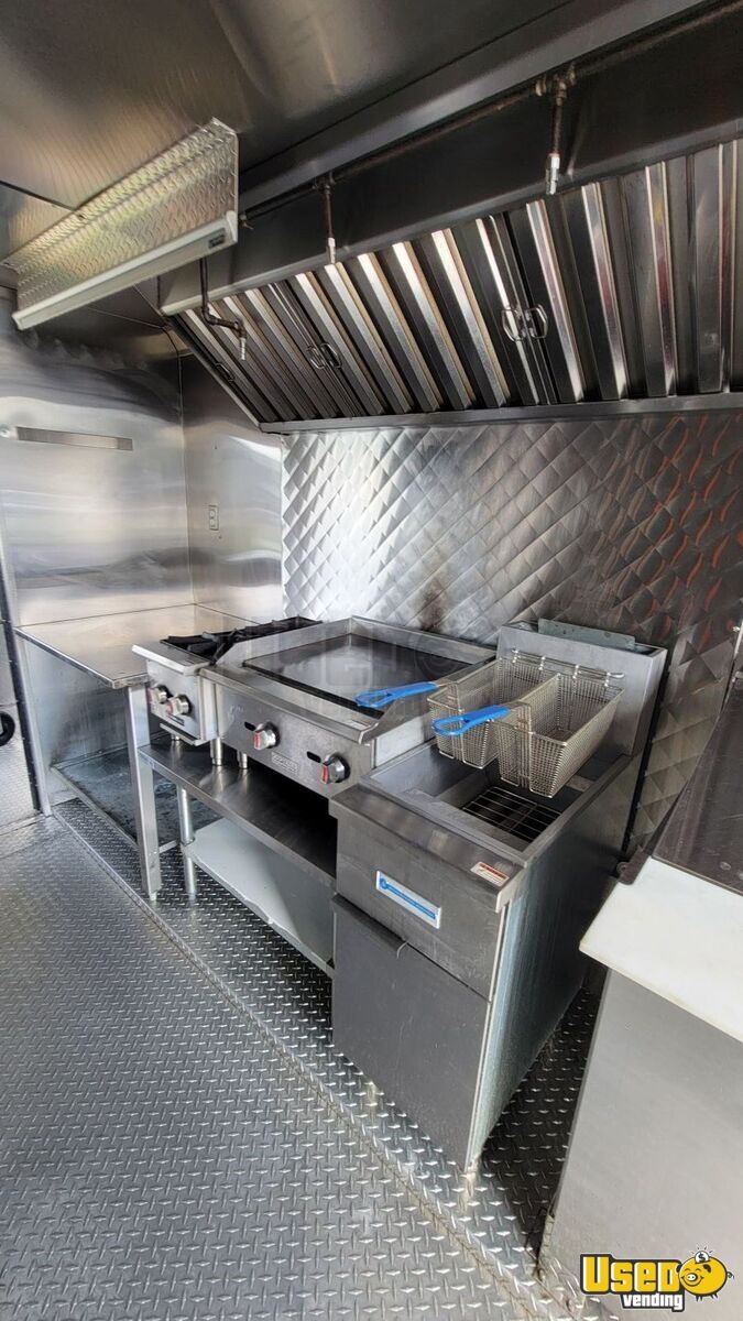Standout features include: - Triple sink and 40-gallon freshwater tank - Upright freezer and sandwich prep cooler - Stainless steel griddle, burner, and fryer - Exhaust hood with fire suppression system - 12,000 BTU air conditioning - Four-camera security system