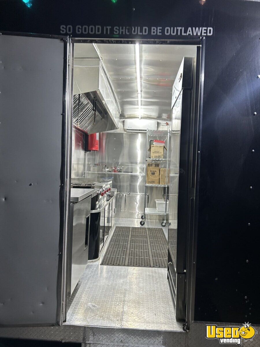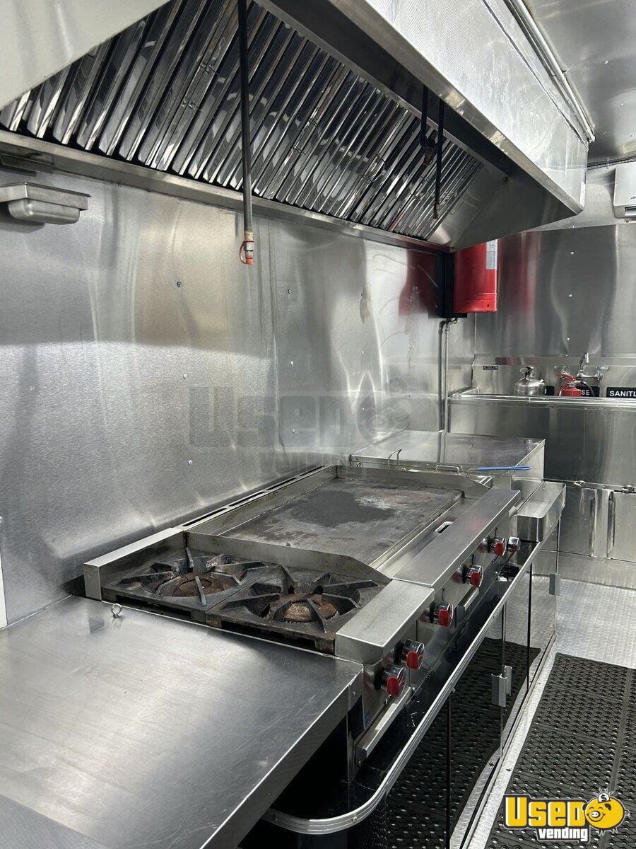 Key highlights include: - Dual concession windows for seamless service - 36" flat grill, two-burner stovetop, and fryer - Refrigeration and prep cooler - 9' exhaust hood with fire suppression - Rear A/C unit and diamond-plated flooring - Generator and exterior fold-down counter