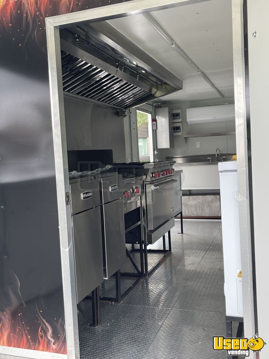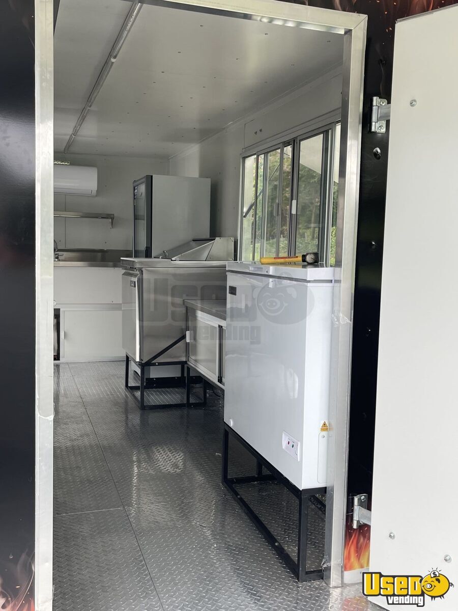 This BBQ food trailer with a 6' porch is built for serious cooking and efficient service. Equipped with a powerful two ton air conditioner, three axles for better support, and a practical open porch layout, it’s an ideal setup for high volume food operations or BBQ competitions. Don’t wait, call today!